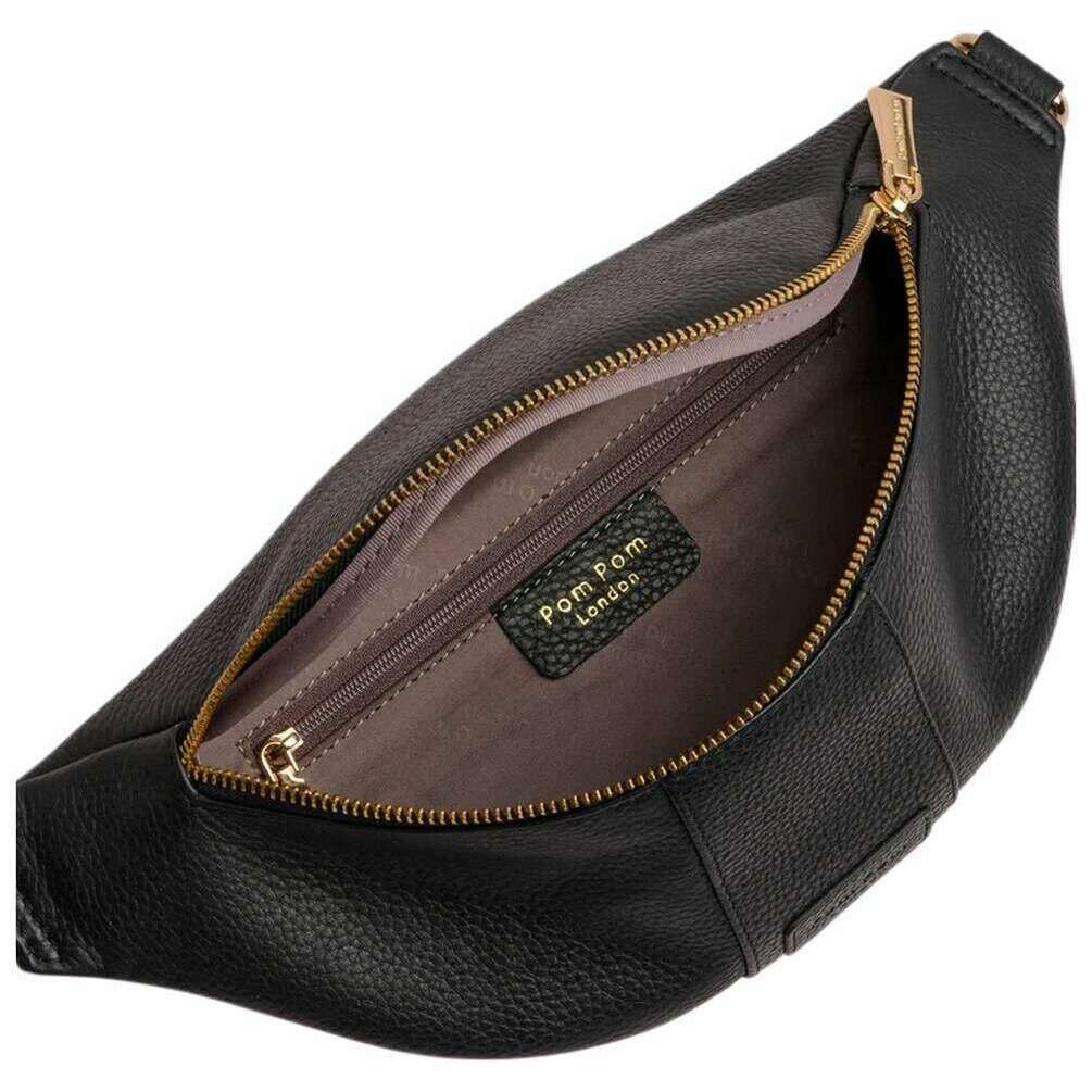 Denna svarta ryggväska för kvinnor är tillverkad av 100 % fullnarvsläder från märket Pom Pom London. Den mäter 12 cm (höjd) x 33 cm (bredd) x 11 cm (djup). Alla påsar levereras kompletta med pom pom london förpackning. Pom Pom London Bum Bag - Svart är designad för alla som söker ett snyggt, handsfree-alternativ som inte kompromissar med elegansen. Dess eleganta siluett och moderna tilltal gör den till den perfekta accessoaren för dagar på resande fot, reseäventyr eller vardagliga ärenden. Tillverkad av fullnarvsläder ger den både hållbarhet och en lyxig finish. Väskan har en mångsidig nylonrem som kan justeras för en bekväm och personlig passform, oavsett om den bärs runt midjan eller stylad crossbody. För praktisk organisation inkluderar den ett separat externt fack med dragkedja som ger snabb åtkomst till det väsentliga, samt en intern ficka med dragkedja utformad för att hålla värdesaker säkra och snyggt arrangerade. Pom Pom Londons signaturhårdvara i guld ger en touch av ikonisk elegans som lyfter upp denna vardagliga nödvändighet, som avslutar utseendet.