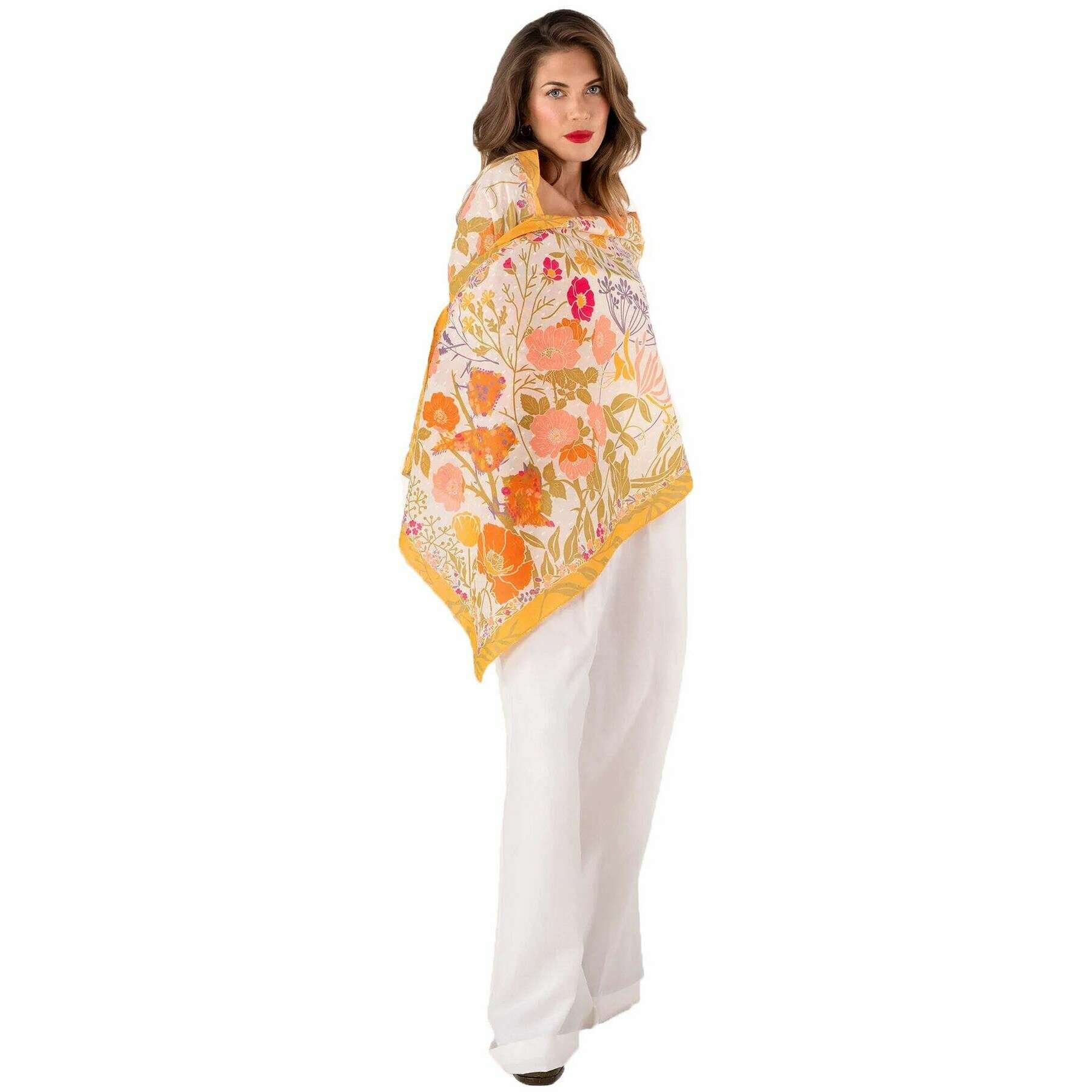 Powder Birds in Bloom Cotton Scarf - Gul/Cream/Beige