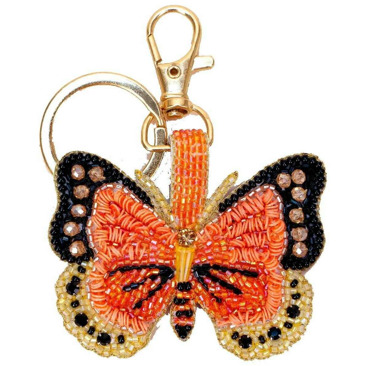 Powder Bonny Butterfly Beaded Keyring - Cream/Orange/Svart