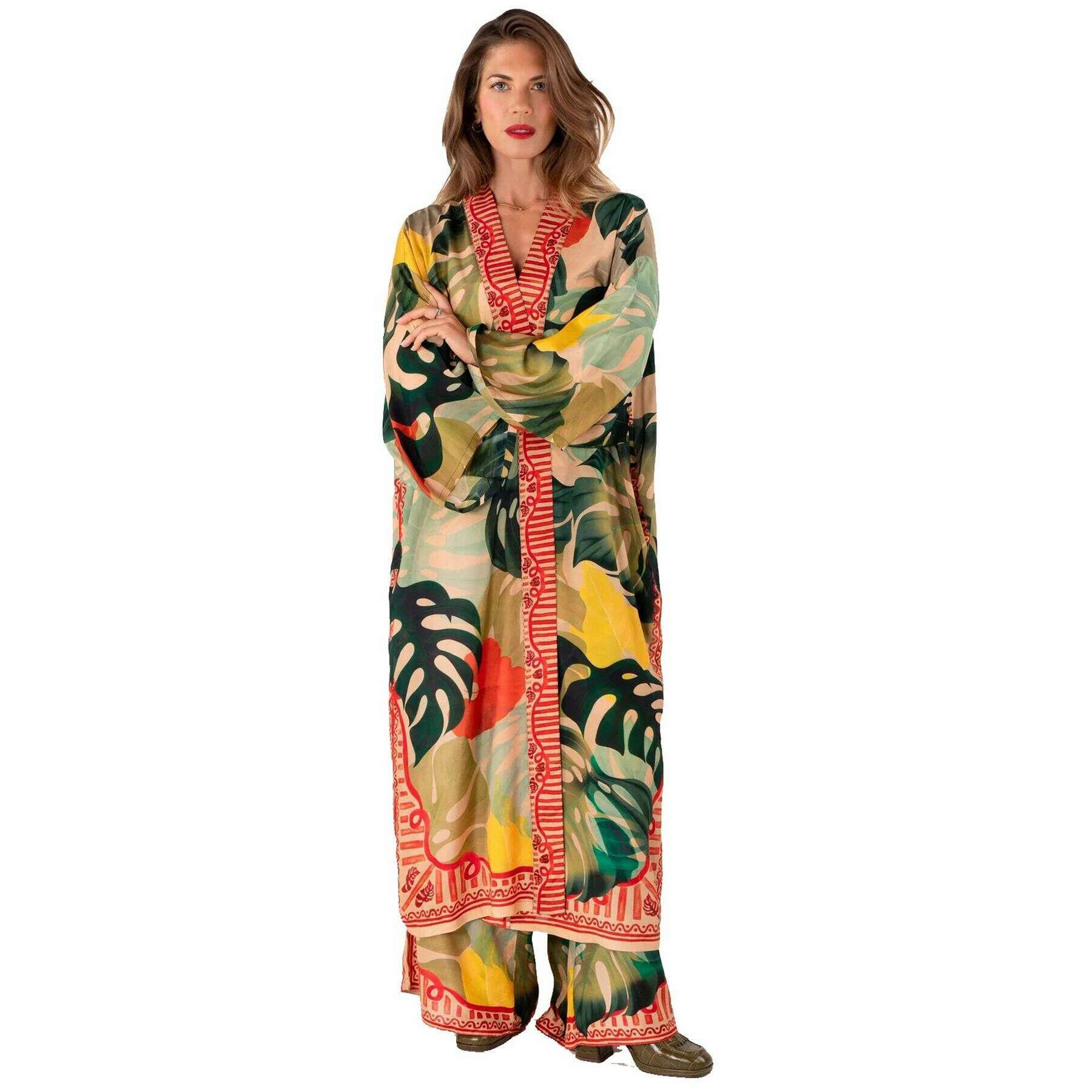 Powder Exotic Leaves Kimonoklänning - Grön/Beige/Gul