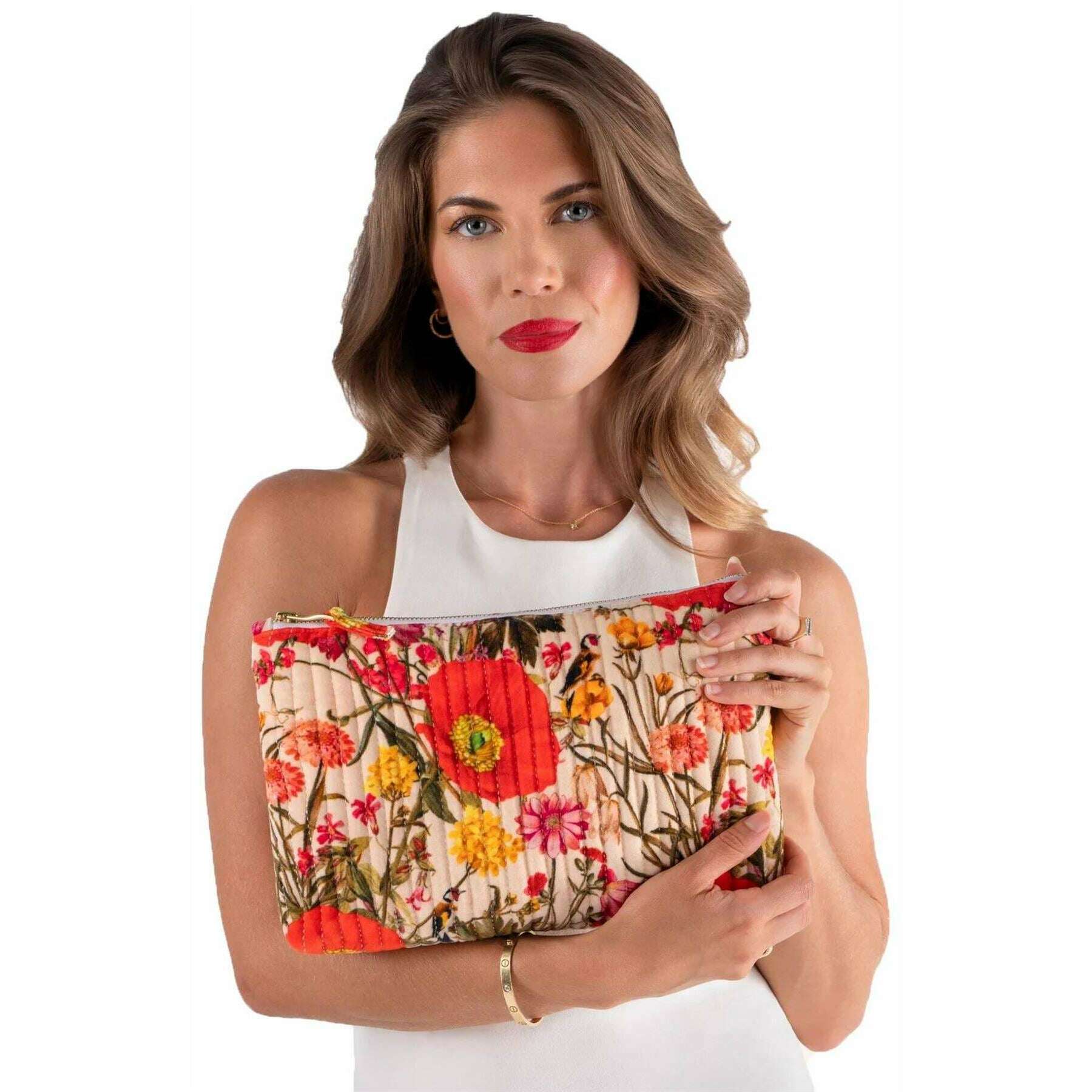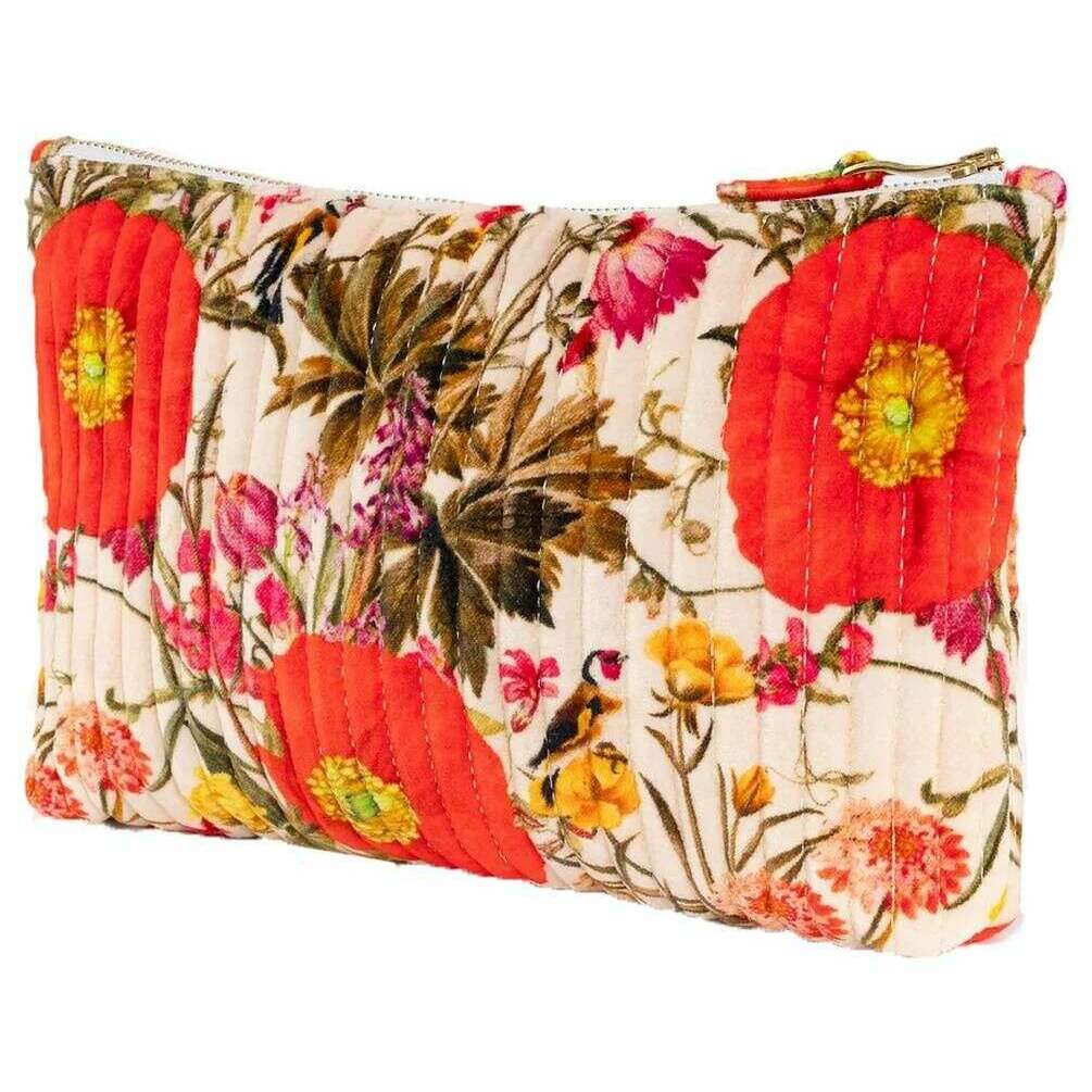 Powder Fine Flowers Quilted Velvet Zip Pouch - Vit/Röd/Beige