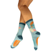 Dessa ankelstrumpor för kvinnor av märket Powder är gjorda av 65 % bambu, 15 % bomull, 10 % nylon och 10 % elastan och visas i blått. Även de blå/orange sockorna är designade i ett blommönster. Det rekommenderas att tvätta i 30 grader för att hålla dessa strumpor i gott skick. Alla strumpor levereras kompletta med pulverstrumpor. Powder Foraging ankelstrumpor - blå/orange har en rolig, lekfull design som kommer att vara ett glädjefullt tillskott till alla dina outfits. Dessa strumpor är gjorda av bambu och är otroligt bekväma och hållbara. De rika färgerna och den lekfulla bakgrunden gör att dessa strumpor sticker ut. Dessa blå och orangea strumpor är perfekta som present och är perfekta för en somrig outfit.