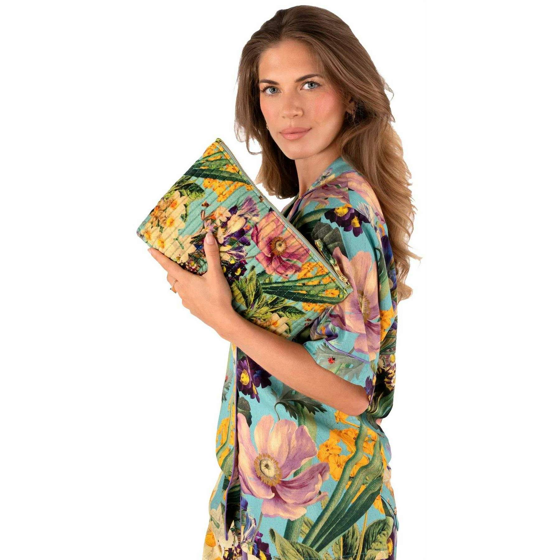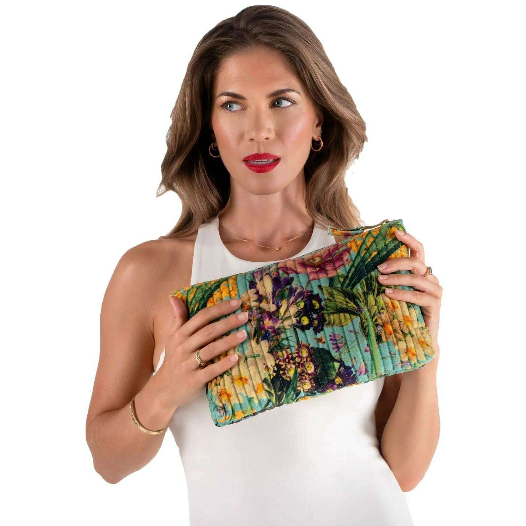 Powder Spring Flora Quilted Velvet Zip Pouch - Blå/Beige/Grön
