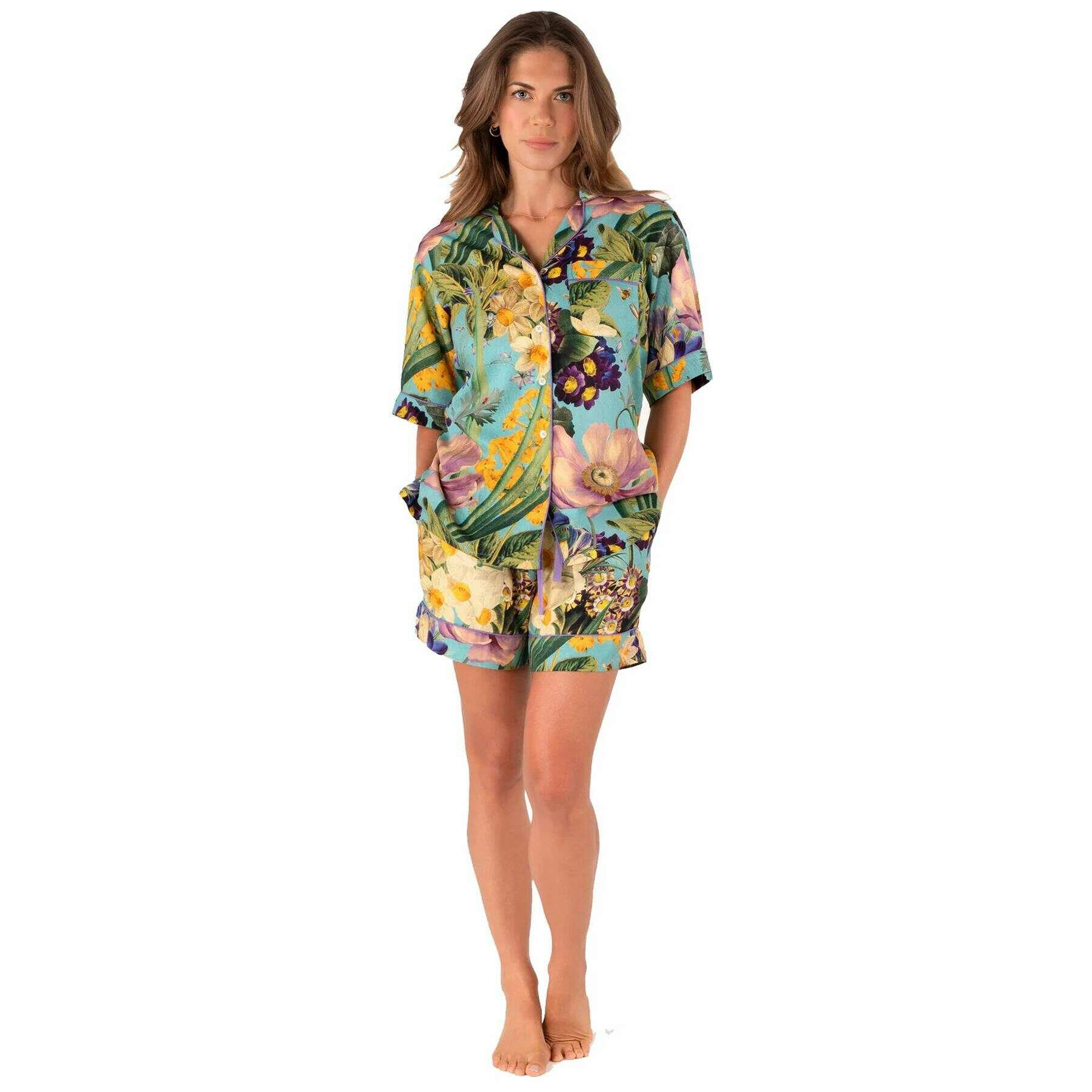 Powder Spring Flora Short Pyjamas - Blå/Grön/Gul