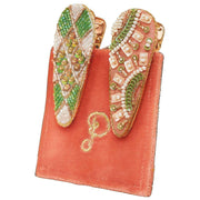 Tillverkad av 100 % polyestersammet är dessa rosa/gröna/krämfärgade soliga hårklämmor för kvinnor av designern Powder. Den mäter 8 cm (höjd) x 7 cm (bredd). 2-pack håraccessoarer ger valuta för pengarna vilket säkerställer att de är ett bra köp. Alla håraccessoarer levereras komplett med pulverförpackning. Powder Sunny Hair Clips - Pink/Green/Cream kommer att lyfta ditt hårspel vid alla tillfällen, och lägga till stilfull stil som får folk att stirra. Vackert utsmyckad med en intrikat pärldesign och broderi är denna uppsättning med 2 hårspännen ett måste för din samling.