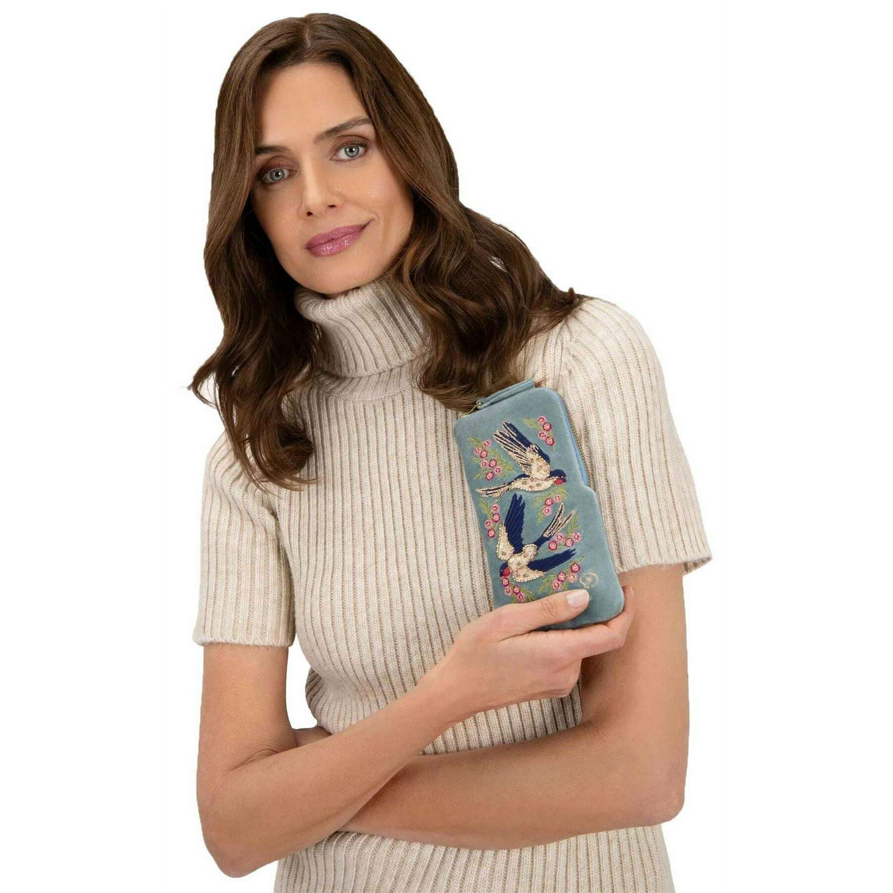 Genom att introducera denna kvinnors svängande svalor sammet solglasögon påse med pulver, är den tillverkad av 100% polyester sammet i en isblå färg. Den mäter 20 cm (höjd) x 10 cm (bredd). Alla tillbehörsfall levereras komplett med pulvertaggar. Pulver som sväljer sväljer sammet solglasögonpåse - Ice Blue kommer att jämna upp ditt solglasögonspel och hålla dem säkra och skyddade i stil. Den handbroderade designen kommer att ge en touch av kul till din vardag. Förutom vacker, är designen också praktisk med en förenklad men ändå säker dragkedja, vilket gör att du är enkel åtkomst till dina solglasögon för när du behöver dem.