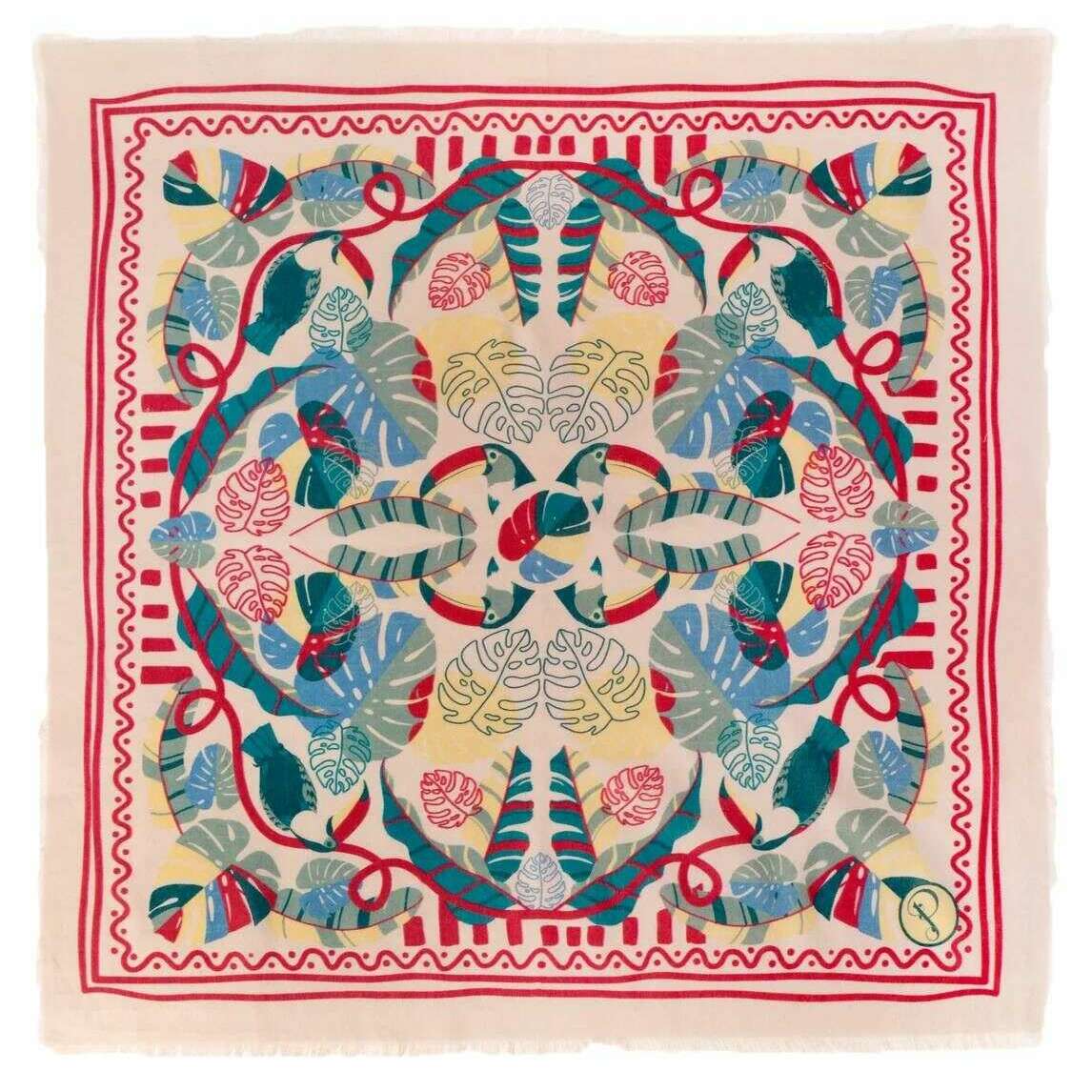 Pulver Tropical Toucan Bandana - Beige/Röd/Blå