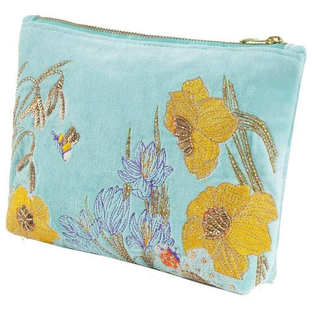 Powder Wildflower Meadow Mid Size Broderad Zip Pouch - Gul/Blå/Beige