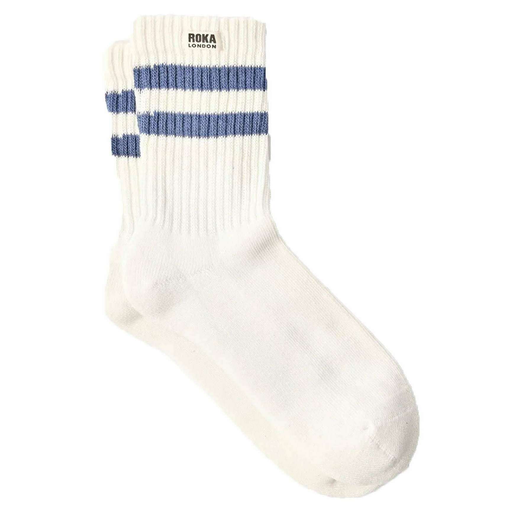 Dessa blå/vita vindsorstrumpor för män är gjorda av 82 % ekologisk bomull, 10 % nylon och 2 % elastan från märket Roka. Även de kustnära blå/vita sockorna är designade i ett randigt mönster, Alla strumpor kommer kompletta med rokaförpackning. Roka Windsor Socks - Coastal Blue/White erbjuder naturlig andningsförmåga och varaktig mjukhet för ultimat komfort. Den klassiska besättningslängden är förhöjd med signatur dubbla ränder, medan en mjuk stretchmanschett ser till att de sitter kvar hela dagen. Designade för att behålla form, färg och mjukhet tvätt efter tvätt, dessa strumpor är idealiska för pendling, gymmorgnar och allt däremellan.