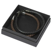 Detta bude-armband för män av märket Simon Carter är tillverkat av rostfritt stål och läder och visas i svart. Alla armband levereras kompletta med simon carter-förpackning. Simon Carter Bude armbandsset - brun/svart/silver är perfekt för vardagskläder. Detta armbandsset har två vävda armband, ett svart och ett brunt. En hummerklolås säkerställer att dessa armband sitter säkert på din handled!