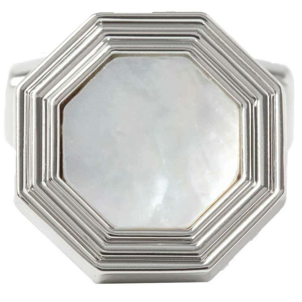 Designern Simon Carter har gett dig dessa mäns rodiumpläterade metall- och pärlemormanschettknappar med vita/silvertoner. Alla manschettknappar levereras kompletta med simon carter-förpackning. Simon Carter Monty Mother of Pearl Manschettknappar - Vit/Silver har en åttakantig ramdesign med en pärlemorsten. Denna uppsättning manschettknappar är den perfekta pricken över i för alla formella tillfällen och är en fantastisk present till alla herrar!