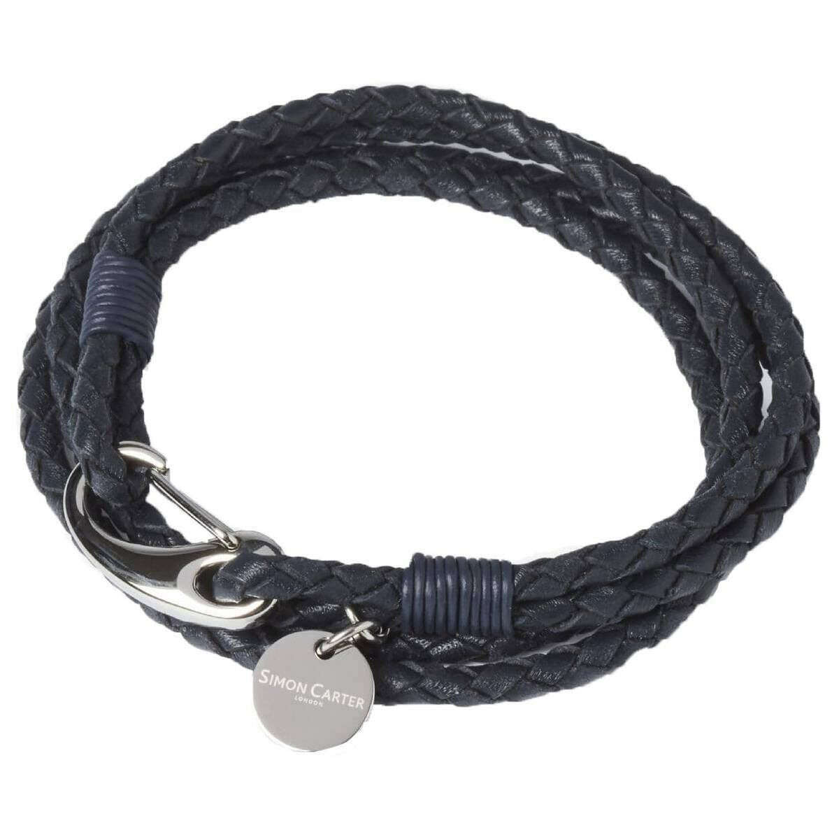 Detta padstow-armband för män är tillverkat av märket Simon Carter i en blå färg och är tillverkat av rostfritt stål och läder. Alla armband levereras kompletta med simon carter-förpackning. Simon Carter Padstow Armband - Marinblå/Silver är perfekt för vardagskläder. Detta armband har en trendig blå vävd design som sveper runt handleden två gånger. En hummerklolås säkerställer att detta armband sitter stadigt på din handled!