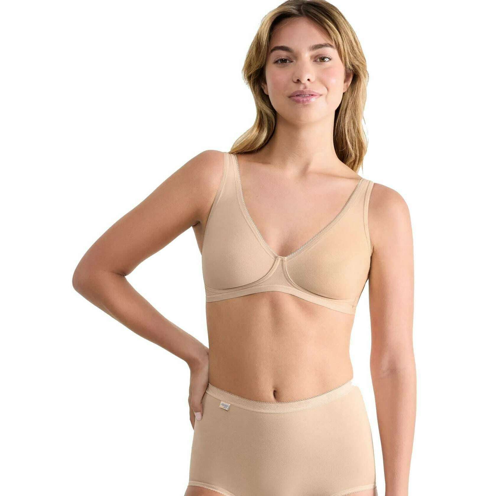 Denna mjuka basic+-bh för kvinnor från märket Sloggi är gjord av 80% bomull, 18% elastan och 2% polyamid och visas i beige. Även skinnbeige underkläder är designade i ett vanligt mönster. Det rekommenderas att maskintvättas i 40 grader för att hålla dessa underkläder i gott skick. Alla underkläder kommer komplett med sloggi-förpackning. Sloggi Basic+ Soft BH - Skin Beige är ett måste för kvinnor som letar efter ultrakomfort och lyx. Denna BH är tillverkad av högkvalitativ organisk bomull som är gjord för att hålla samtidigt som den upprätthåller den mjuka känslan och elasticiteten. De icke vadderade gjutna kupor, medium stöd och justerbara bredare remmar har noggrant utformats för att säkerställa en bekväm passform för vardagsbruk, och den sömlösa passformen ger en osynlig look under vilken outfit som helst.