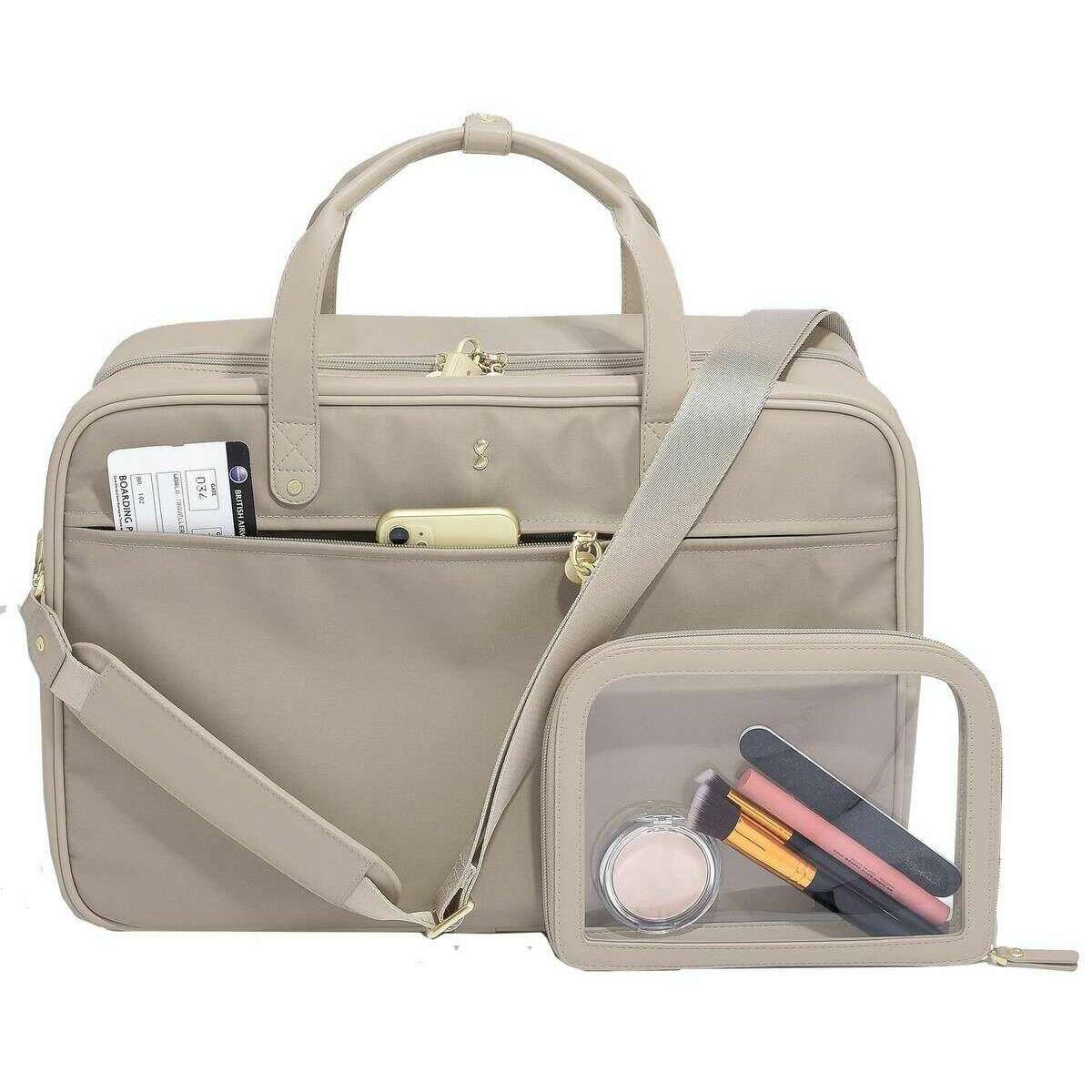 Med beige konstläder och sammet är denna kabinväska från Stackers perfekt för kvinnor och ett måste. Den mäter 33,5 cm (höjd) x 22,5 cm (bredd) x 46 cm (djup). Alla påsar levereras kompletta med staplarförpackningar. Stackers Cabin Bag - Clay Beige är perfekt för användning på språng. Denna beige kabinväska har en laptopficka, två stora fack med blixtlås och en rad mindre fickor. Komplett med axelremmar, ryggsäcksremmar och dragkedja för extra säkerhet.