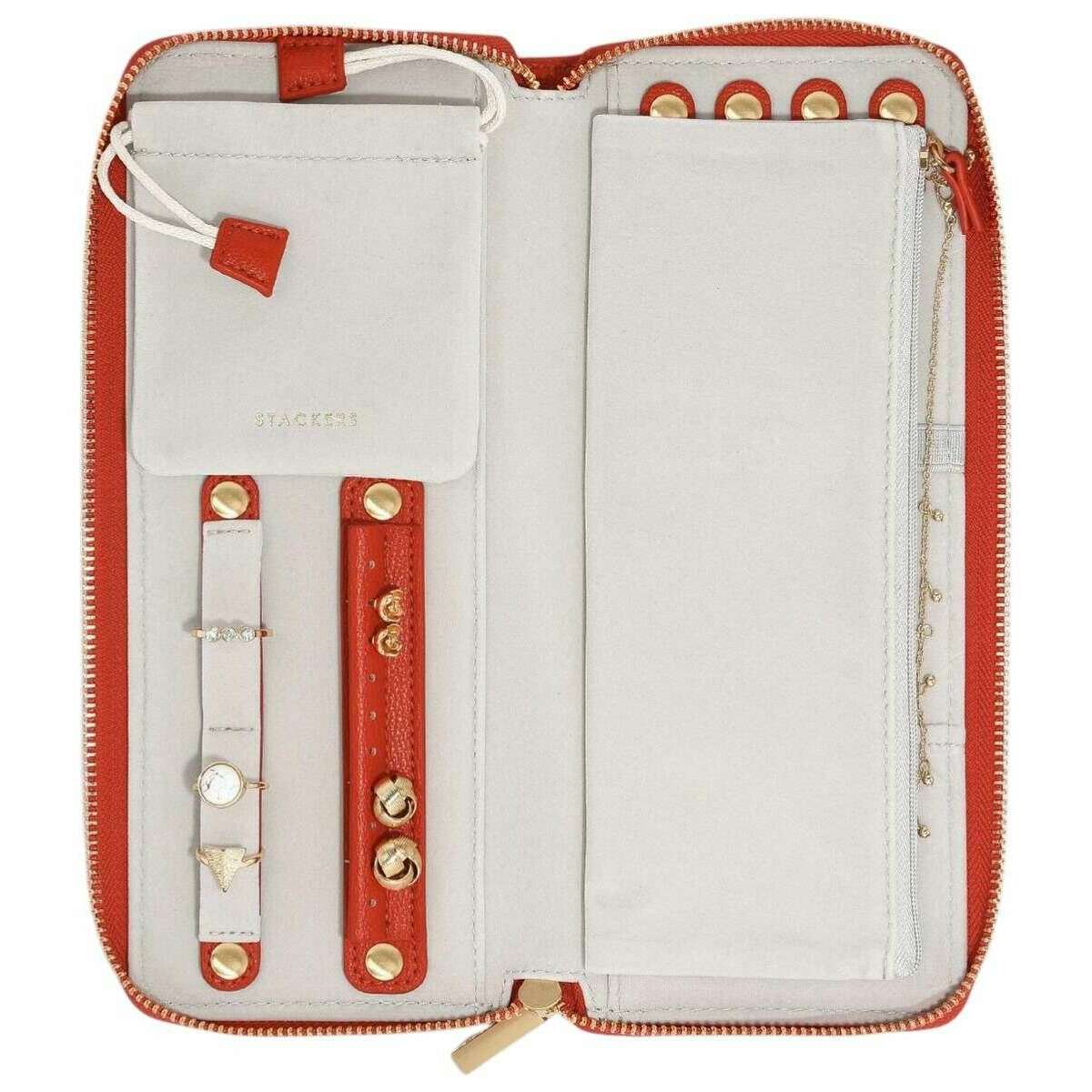 Vi introducerar denna klassiska medelstora smyckesrulle för kvinnor från Stackers, den är tillverkad av konstläder och sammet i en röd färg. Den mäter 3 cm (höjd) x 24,5 cm (bredd) x 10,5 cm (djup). Det rekommenderas att torka rent för att hålla denna smyckeskrin i gott skick. Alla smyckeskrin levereras kompletta med staplarförpackningar. Stackers Classic Medium Jewellery Roll - Red har en mängd olika delar som gör att du kan organisera dina smycken när som helst och var som helst. Allt säkert med sin dragkedja kan du vara säker på att dina favoritsmycken alltid förvaras inne. Denna rulle har plats för upp till fyra halsband eller armband, har en örhängehållare och en liten sammetspåse för att hålla små och lösa föremål säkra. En speciell del av detta tillbehörsfodral är att du kan förvara favorithalsband och armband utan krångel med att trassla. Detta är den perfekta smyckesarrangören att ha när du reser eller bara håller ditt hem snyggt och snyggt.