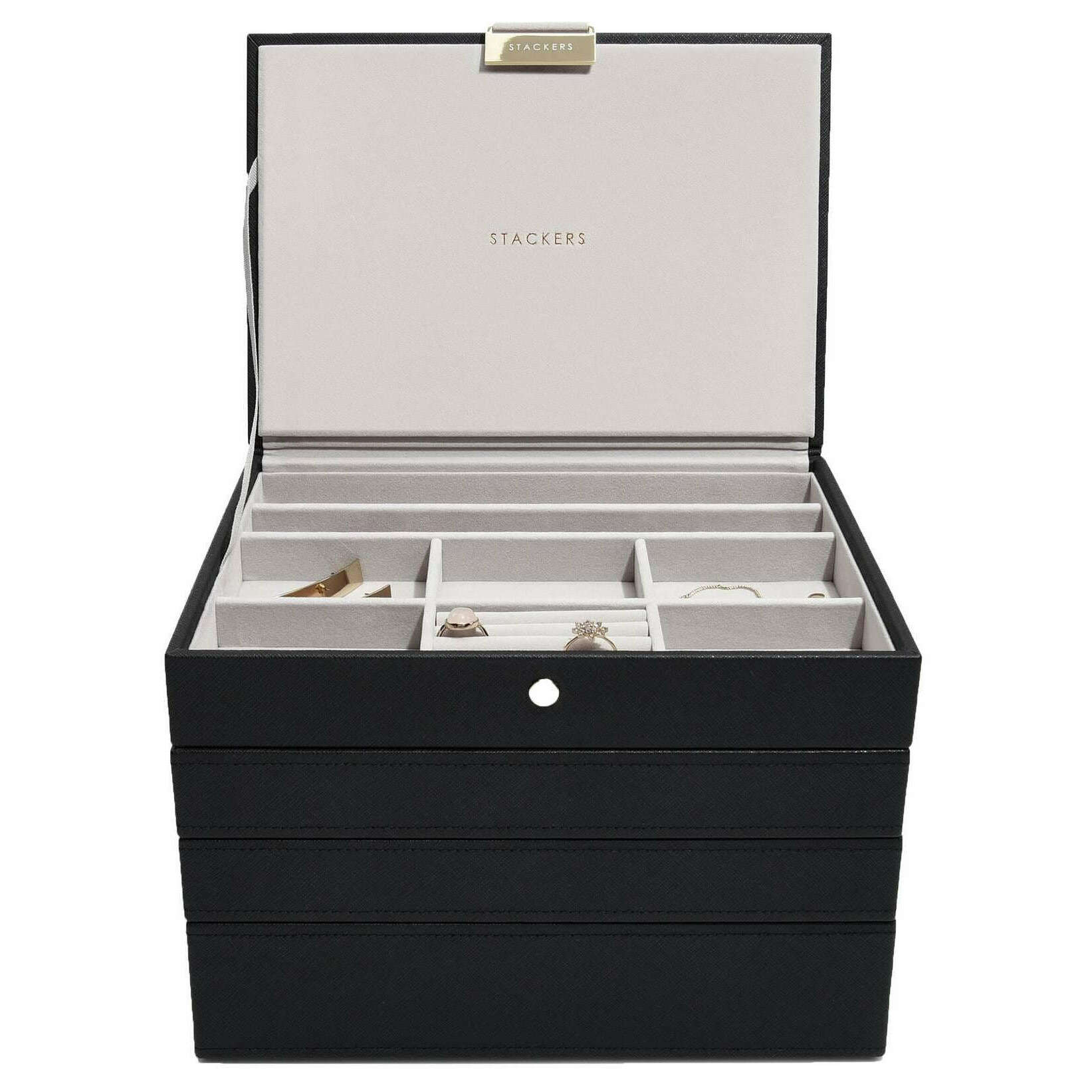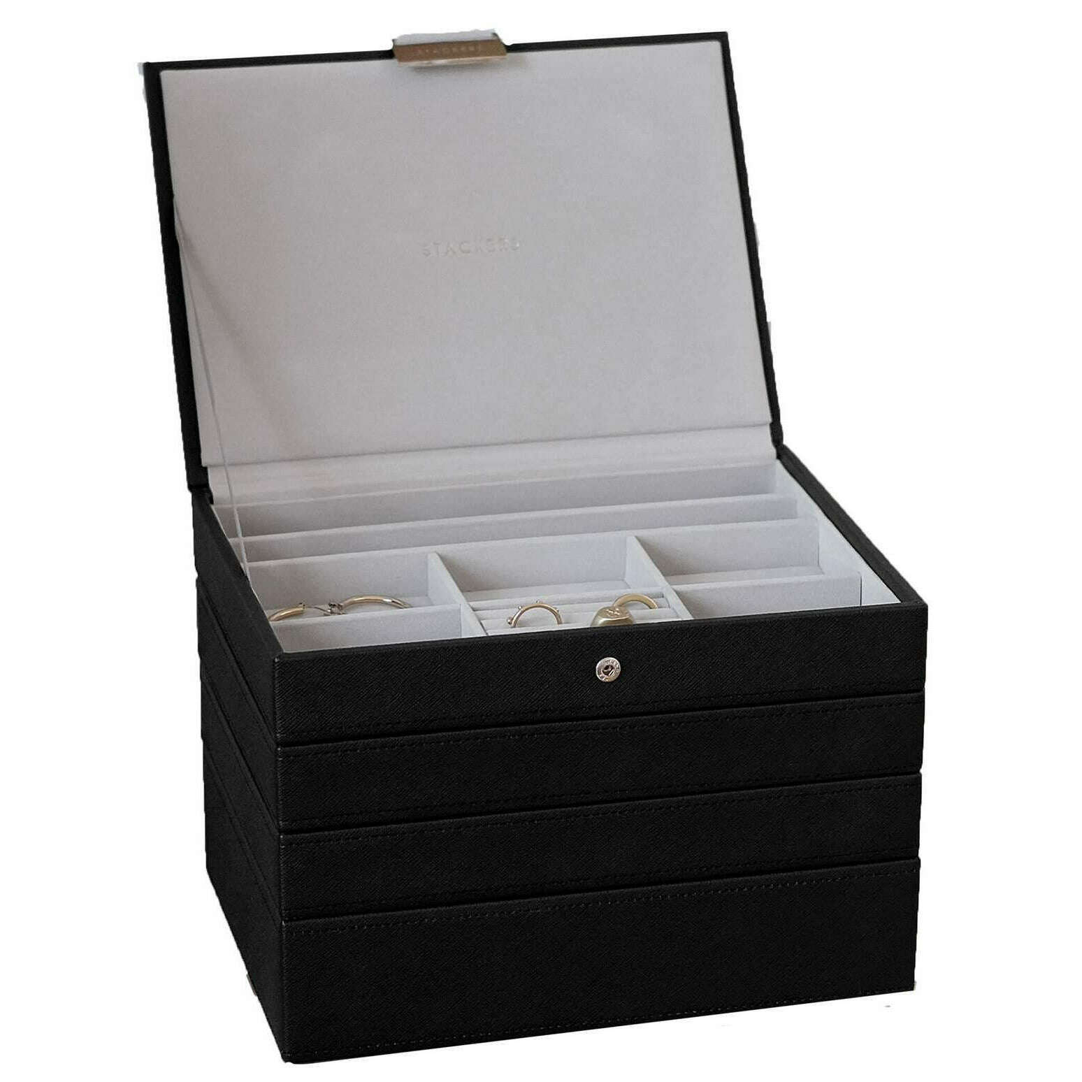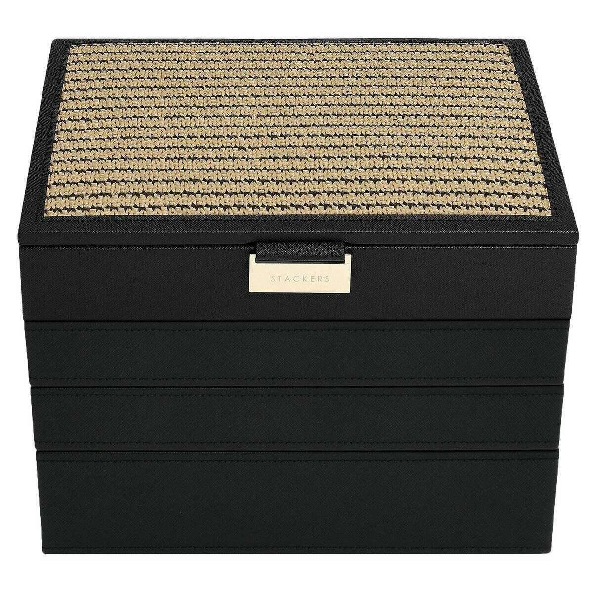 Staplare klassiskt set med 4 smyckeskrin - Svart Raffia