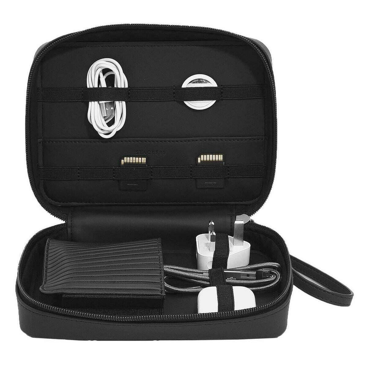 Denna räfflade kabel för kvinnor har gjorts av konstläder, presenterad i en svart färg och är från märket Stackers. Den mäter 16 cm (höjd) x 20,5 cm (bredd) x 7 cm (djup). Alla hemtillbehör kommer komplett med staplarförpackningar. Stackers räfflade kabel - Svart är ett måste när du är på språng! Denna svarta kabelstädning är perfekt för att hålla ordning på alla dina tillhörigheter. Inkluderar en dragkedja för extra säkerhet.