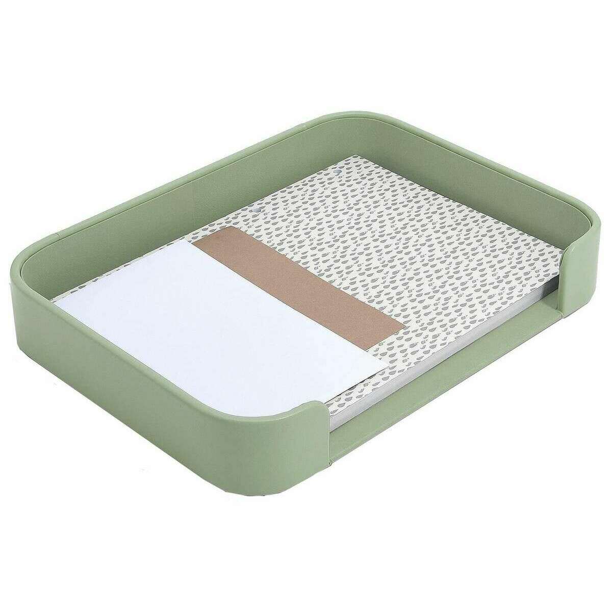 Denna brevfack för kvinnor är gjord av konstläder, presenterad i en grön färg och är från märket Stackers. Den mäter 5 cm (höjd) x 32,5 cm (bredd) x 24,5 cm (djup). Alla skrivbordstillbehör levereras komplett med staplarförpackningar. Stackers brevfack - Pistachio Green har en vacker grön design. Detta brevfack är perfekt för förvaring av papper eller stationärt och kan förvaras på ett skrivbord eller i en låda!