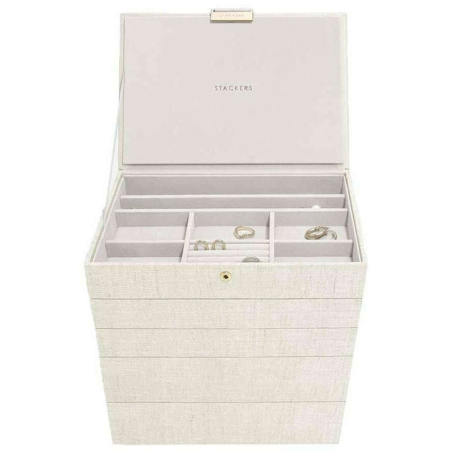 Stackers uppsättning av 5 klassiska smyckeslåda - havregryn/linne beige
