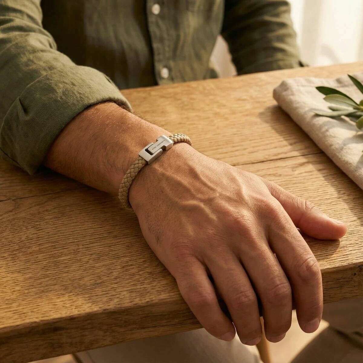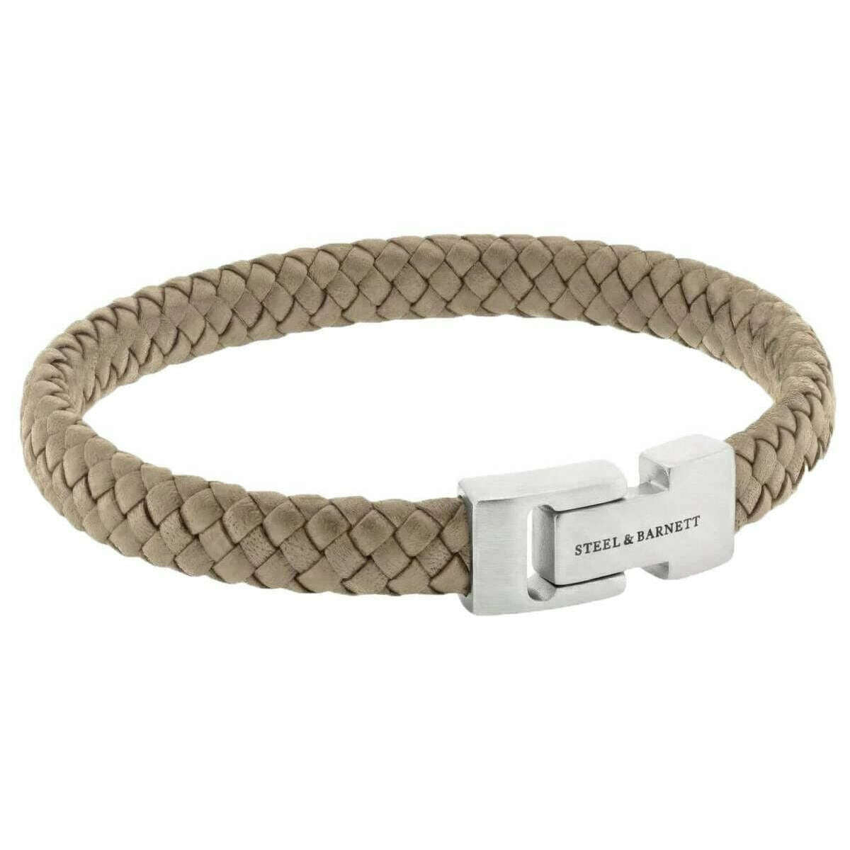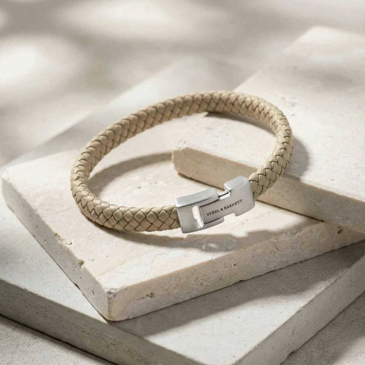 Tillverkat av 100 % nappaläder och rostfritt stål är detta ecru cream archie flätade läderarmband för män av designern Steel & Barnett. Alla armband levereras kompletta med stål & barnett förpackningar. Steel & Barnett Archie Braided Leather Armband - Ecru Cream förkroppsligar den perfekta balansen mellan enkelhet och elegans. Sakkunnigt handgjorda av äkta Nappa-läder, dess släta 8 mm-band ger en ren, minimalistisk estetik som passar alla stilar. Designen är förhöjd av en signatur, borstad silverlås, fint graverad med STEEL & BARNETT-logotypen, som erbjuder en subtil touch av distinktion. Armbandet är byggt för lång livslängd och har ett högkvalitativt 316L rostfritt stållås, berömt för sin hållbarhet och korrosionsbeständighet. Dess magnetiska fäste säkerställer lätt slitage, vilket ger en säker och bekväm passform hela dagen. Mångsidig och raffinerad, Archie övergår sömlöst från formella tillfällen till avslappnade miljöer och lägger till ett lager av diskret sofistikering till varje outfit.