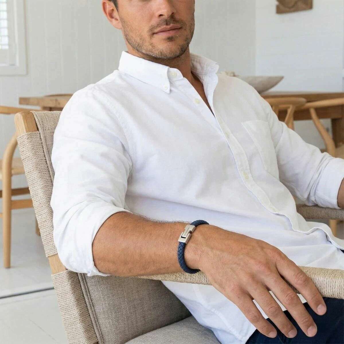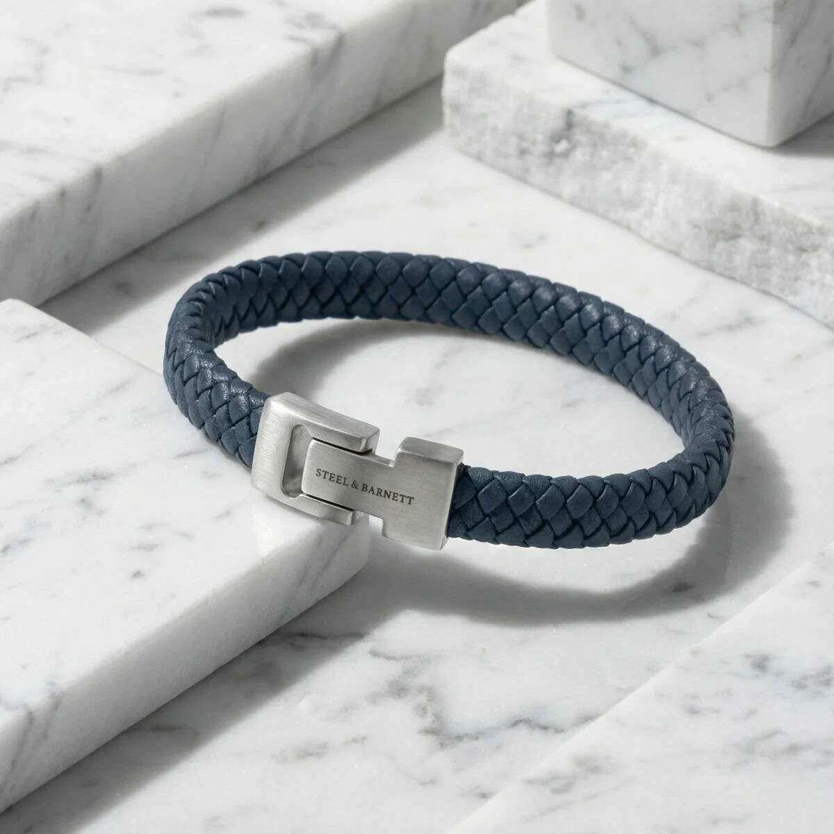 Detta archie flätade läderarmband för män är tillverkat av 100 % nappaläder och rostfritt stål, presenterat i en blå färg och är från märket Steel & Barnett. Alla armband levereras kompletta med stål & barnett förpackningar. Steel & Barnett Archie Braided Leather Armband - Jeans Blue förkroppsligar den perfekta balansen mellan enkelhet och elegans. Sakkunnigt handgjorda av äkta Nappa-läder, dess släta 8 mm-band ger en ren, minimalistisk estetik som passar alla stilar. Designen är förhöjd av en signatur, borstad silverlås, fint graverad med STEEL & BARNETT-logotypen, som erbjuder en subtil touch av distinktion. Armbandet är byggt för lång livslängd och har ett högkvalitativt 316L rostfritt stållås, berömt för sin hållbarhet och korrosionsbeständighet. Dess magnetiska fäste säkerställer lätt slitage, vilket ger en säker och bekväm passform hela dagen. Mångsidig och raffinerad, Archie övergår sömlöst från formella tillfällen till avslappnade miljöer och lägger till ett lager av diskret sofistikering till varje outfit.