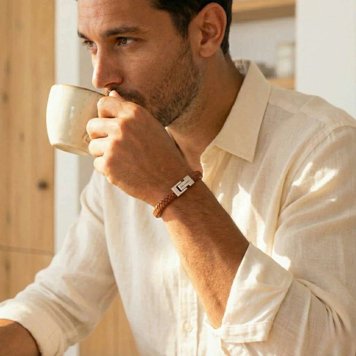 Designern Steel & Barnett har gett dig detta armband i 100 % nappaläder och rostfritt stål för män som använder jordnötsbruna toner. Alla armband levereras kompletta med stål & barnett förpackningar. Steel & Barnett Archie Braided Leather Armband - Peanut Tan förkroppsligar den perfekta balansen mellan enkelhet och elegans. Sakkunnigt handgjorda av äkta Nappa-läder, dess släta 8 mm-band ger en ren, minimalistisk estetik som passar alla stilar. Designen är förhöjd av en signatur, borstad silverlås, fint graverad med STEEL & BARNETT-logotypen, som erbjuder en subtil touch av distinktion. Armbandet är byggt för lång livslängd och har ett högkvalitativt 316L rostfritt stållås, berömt för sin hållbarhet och korrosionsbeständighet. Dess magnetiska fäste säkerställer lätt slitage, vilket ger en säker och bekväm passform hela dagen. Mångsidig och raffinerad, Archie övergår sömlöst från formella tillfällen till avslappnade miljöer och lägger till ett lager av diskret sofistikering till varje outfit.