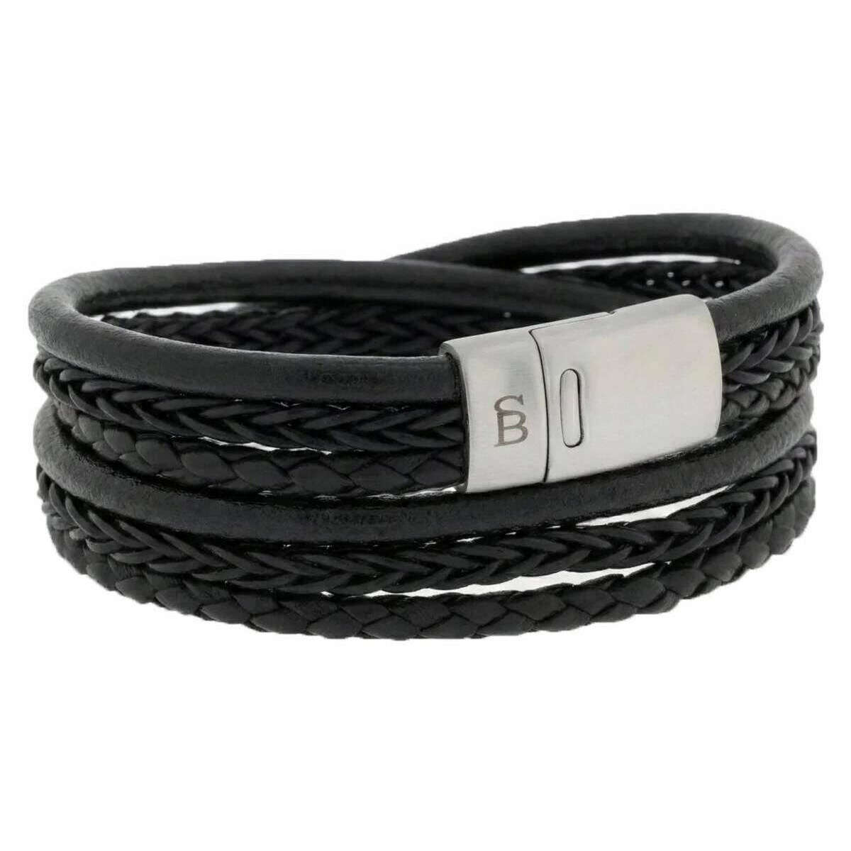 Steel & Barnett Bonacci Layered Multi-Strand Läderarmband - Svart