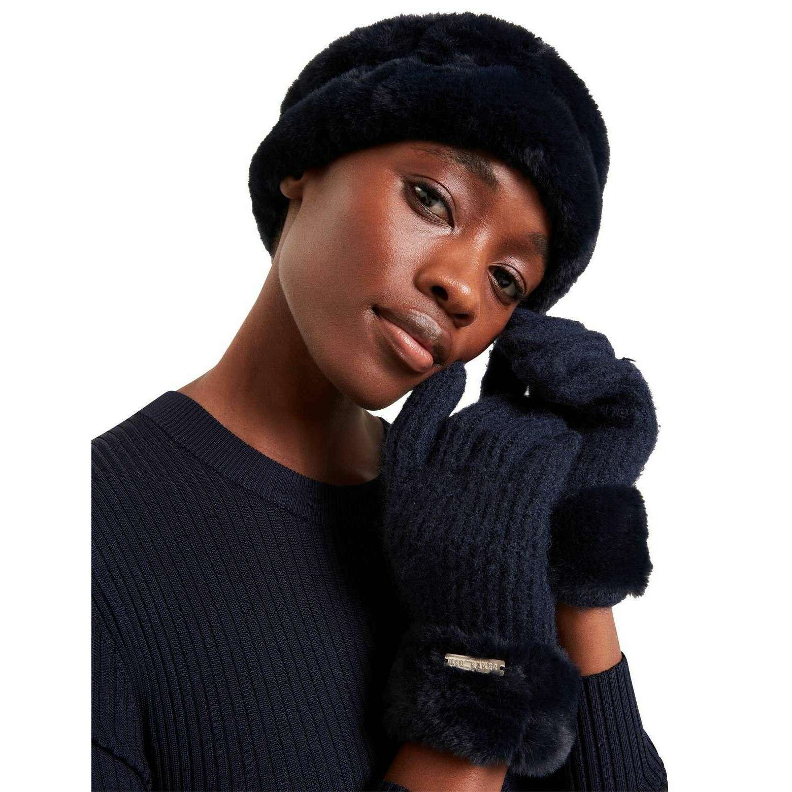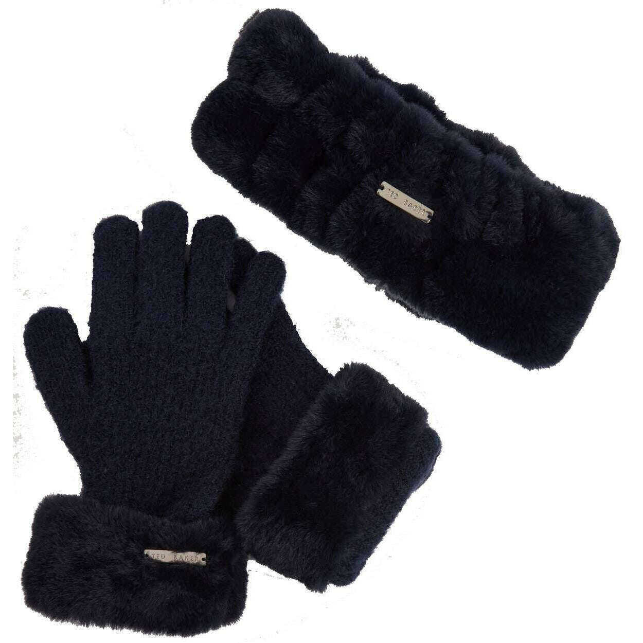 Ted Baker Furinni faux päls pannband och handskar set - marinblå
