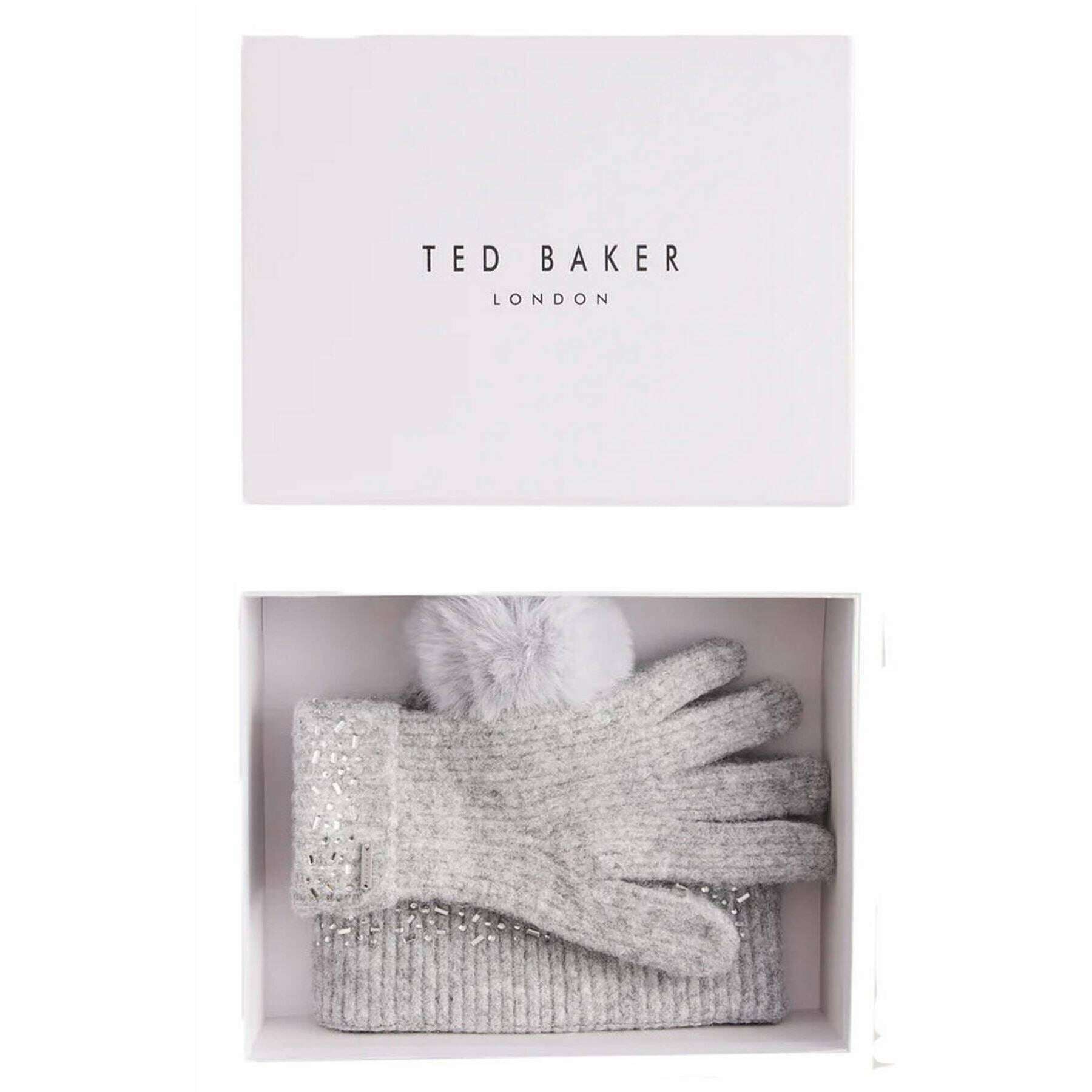 Ted Baker Keriis Rhinestone Sticked Hat and Gloves Set - Grey