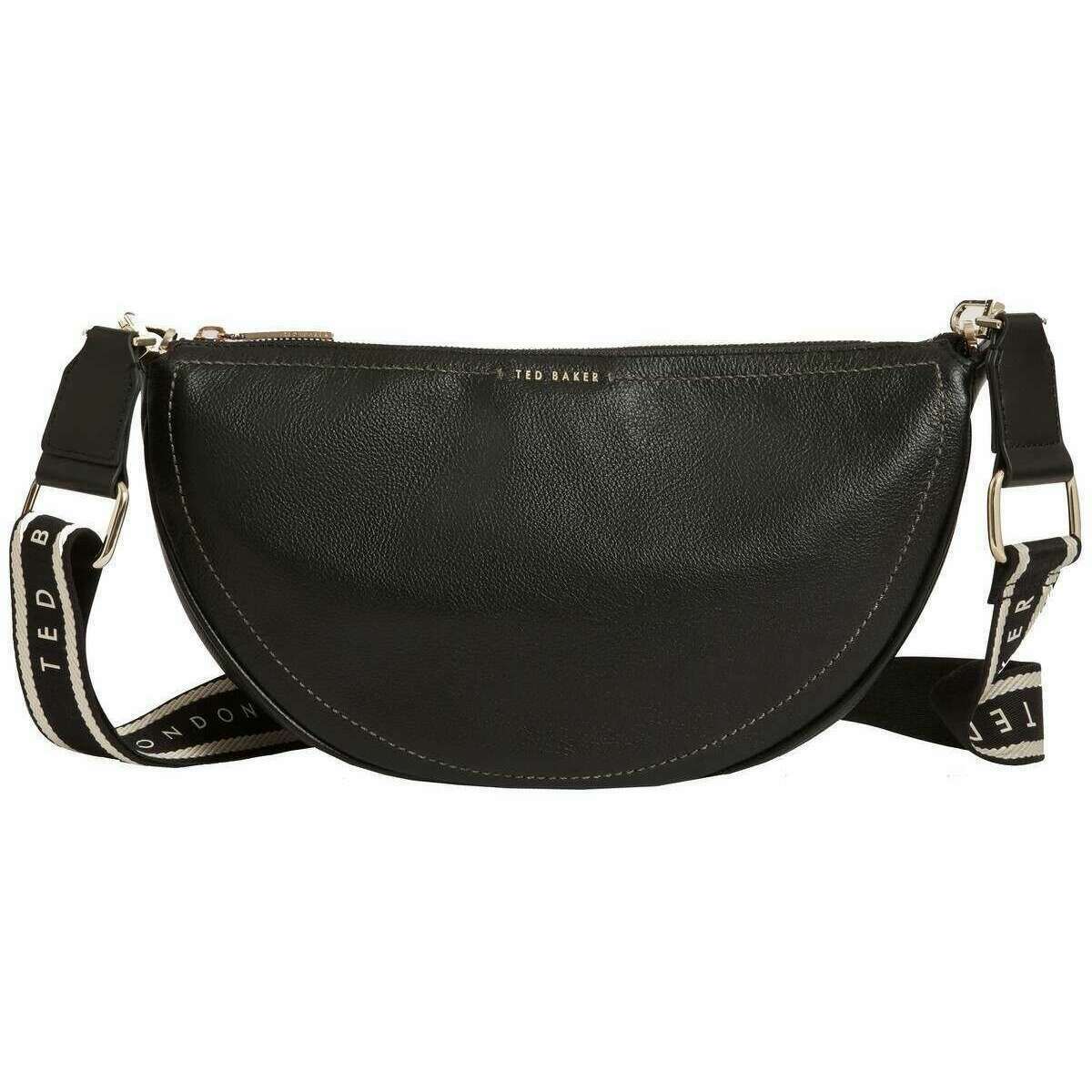 Ted Baker Lorreen Webbing Leather Half Moon Crossbody Bag - Black