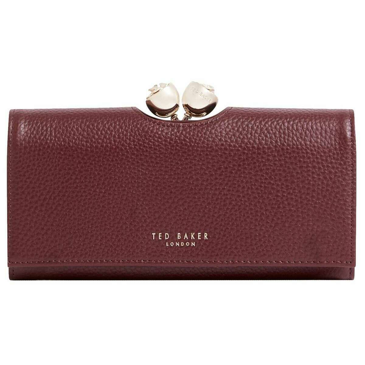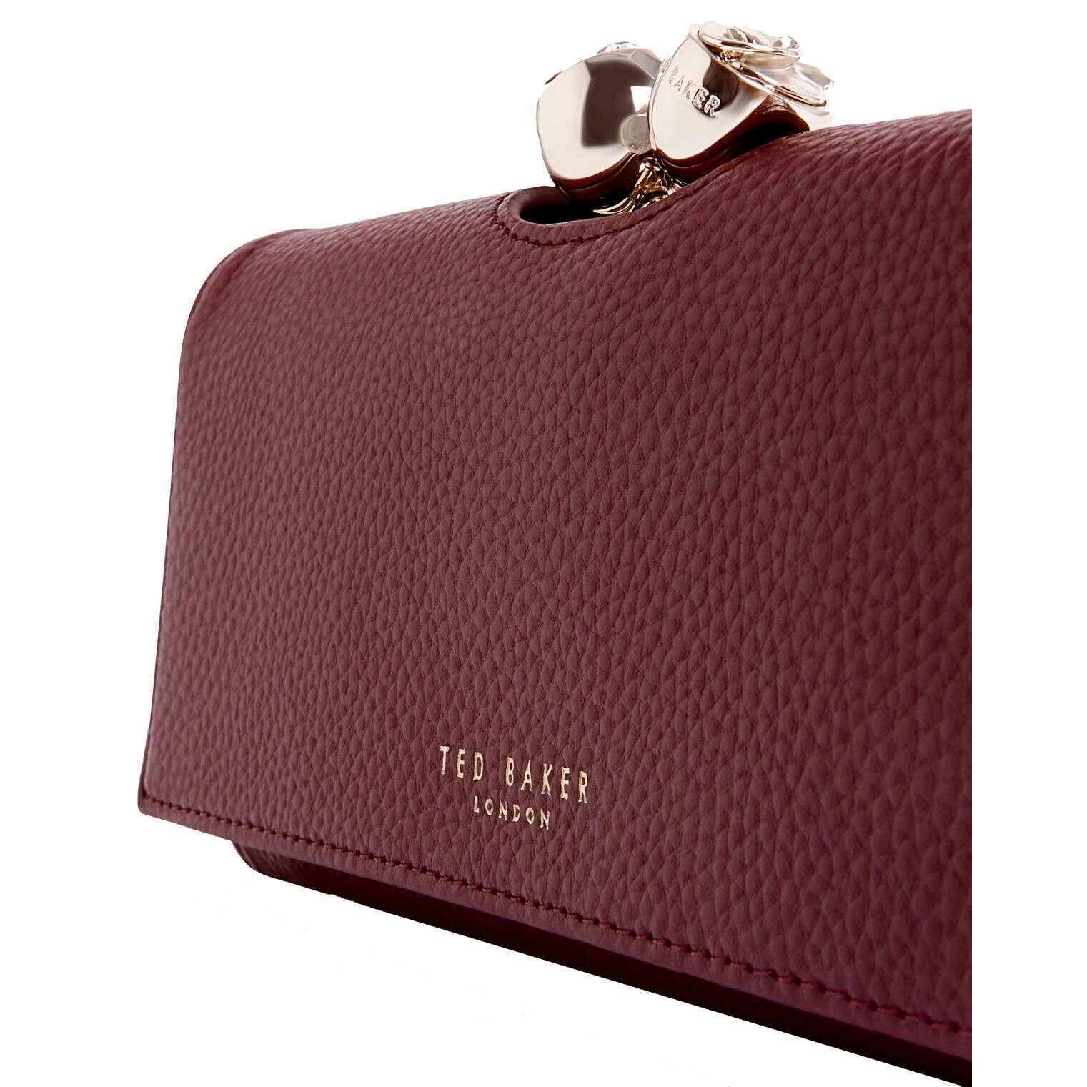 Ted Baker Roosali Rose Detail Large Leather Bobble Purse - Wine Burgundy