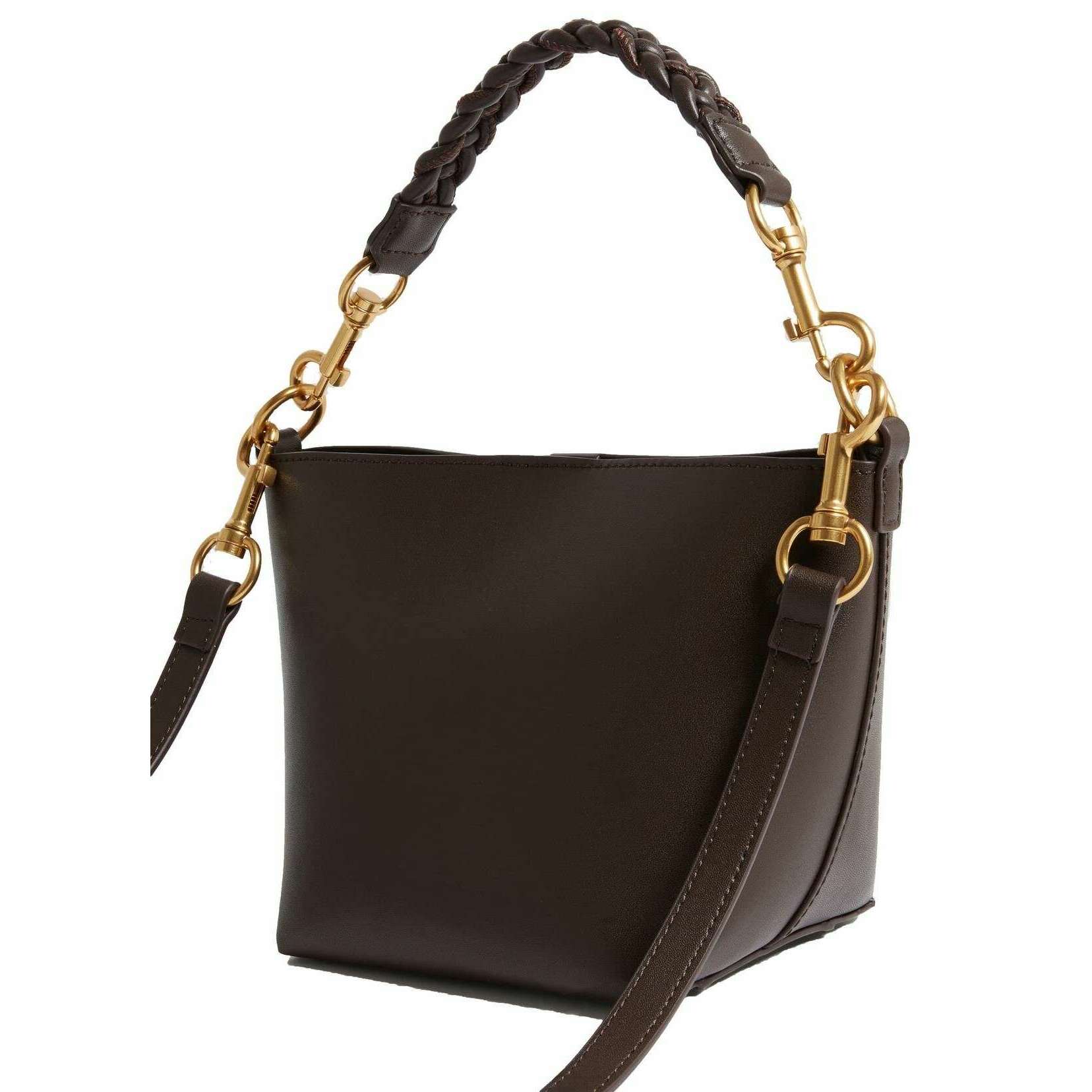 Ted Baker vågigt flätat handtag liten hink tygväska - chokladbrun