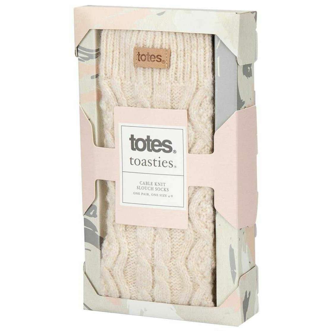 Toes Toasties Cable Knit Slouch Slipper Socks - Oat Cream