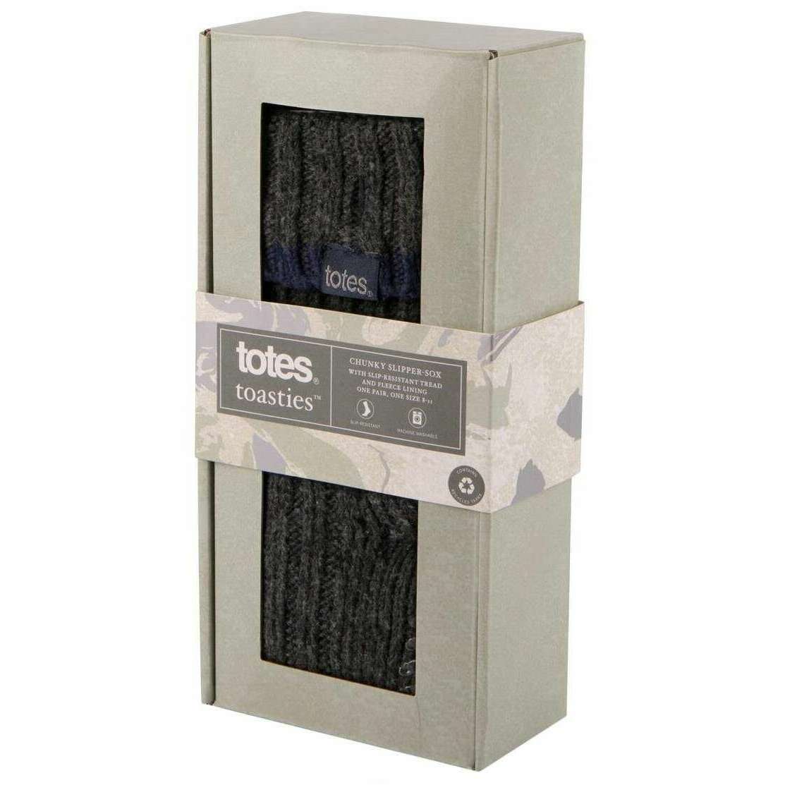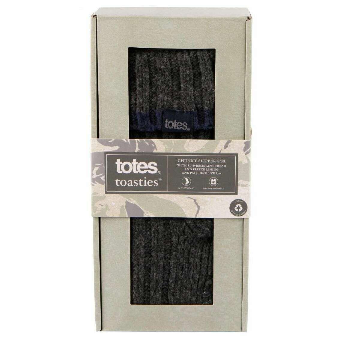 Vi introducerar dessa chunky toffelstrumpor för män från Totes Toasties, de är tillverkade av 100 % polyester i en grå färg. Även de grå sockorna är designade i ett vanligt mönster. Det rekommenderas att maskintvättas i 30 grader för att hålla dessa strumpor i gott skick. Alla strumpor levereras kompletta med toasties-förpackningar. Totes Toasties Chunky Slipper Socks - Grå har en överdragen topp med en ribbad design för en klassisk mysig look. Dessa strumpor är gjorda med fleecefoder och erbjuder optimalt skydd mot kylan under de vinteriga isiga nätterna, samtidigt som de är extremt mjuka för dina fötter. Dessa strumpor har halkfria grepp på sulan så att du kan gå på vilken yta som helst i ditt hus utan att behöva oroa dig för att falla och skada dig själv. Perfekt att ge bort till dina nära och kära i vinter.