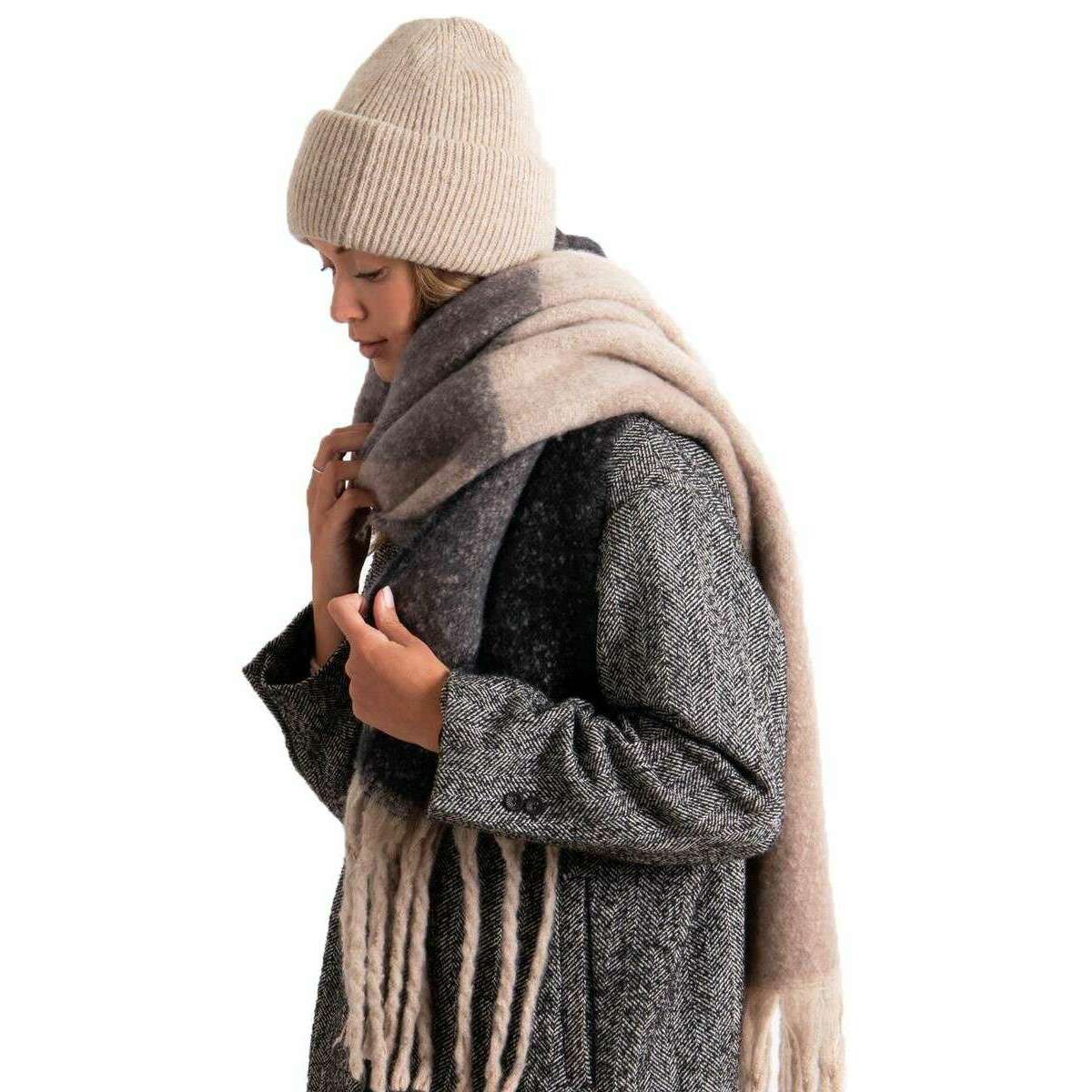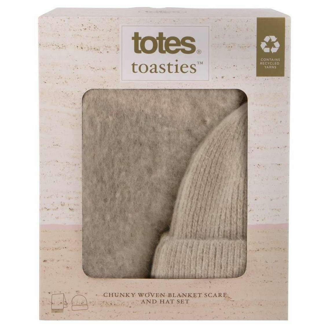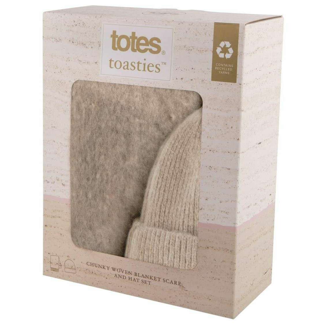 Toes Toasties Chunky Woven Blanket Scarf and Hat Set - Oat Cream/Grey
