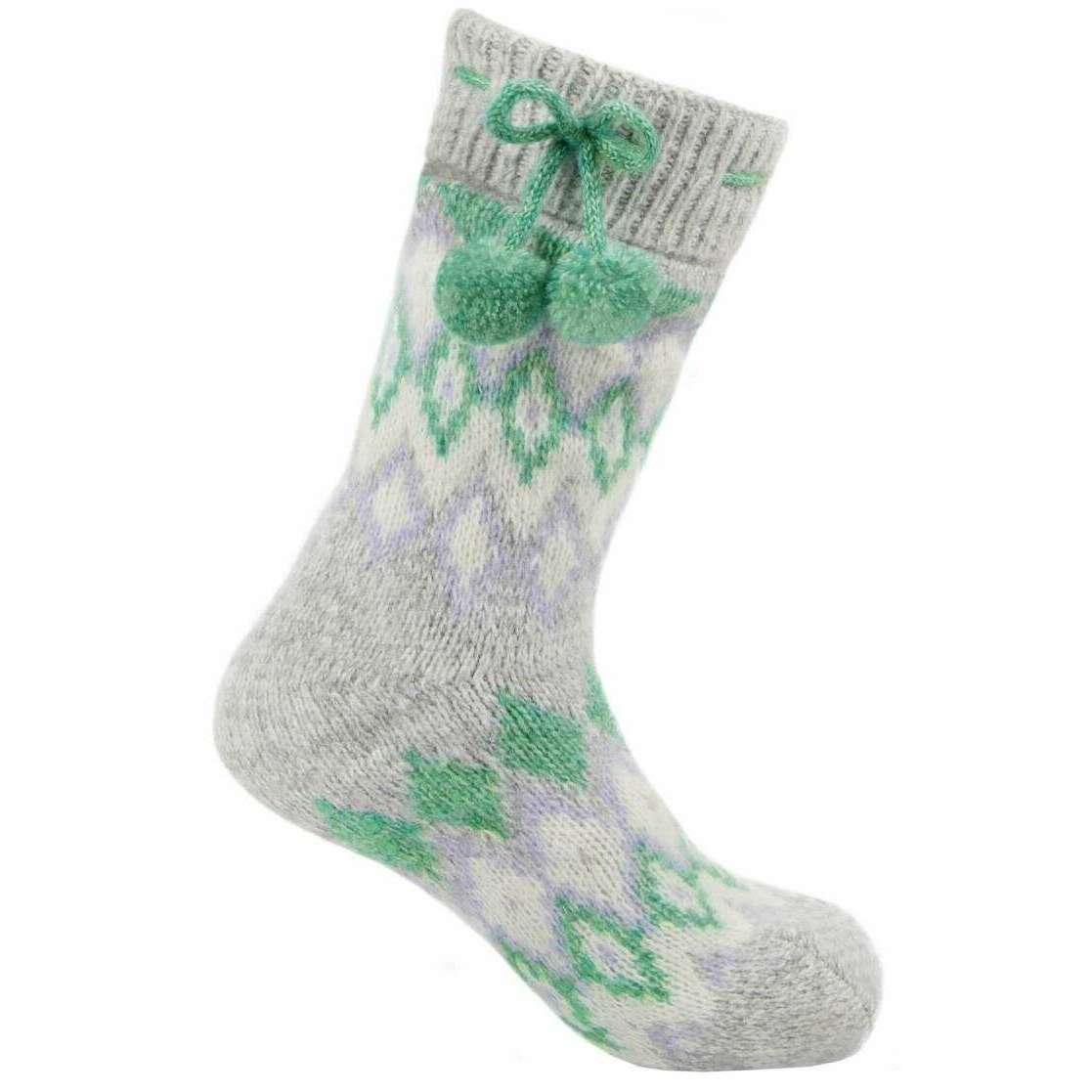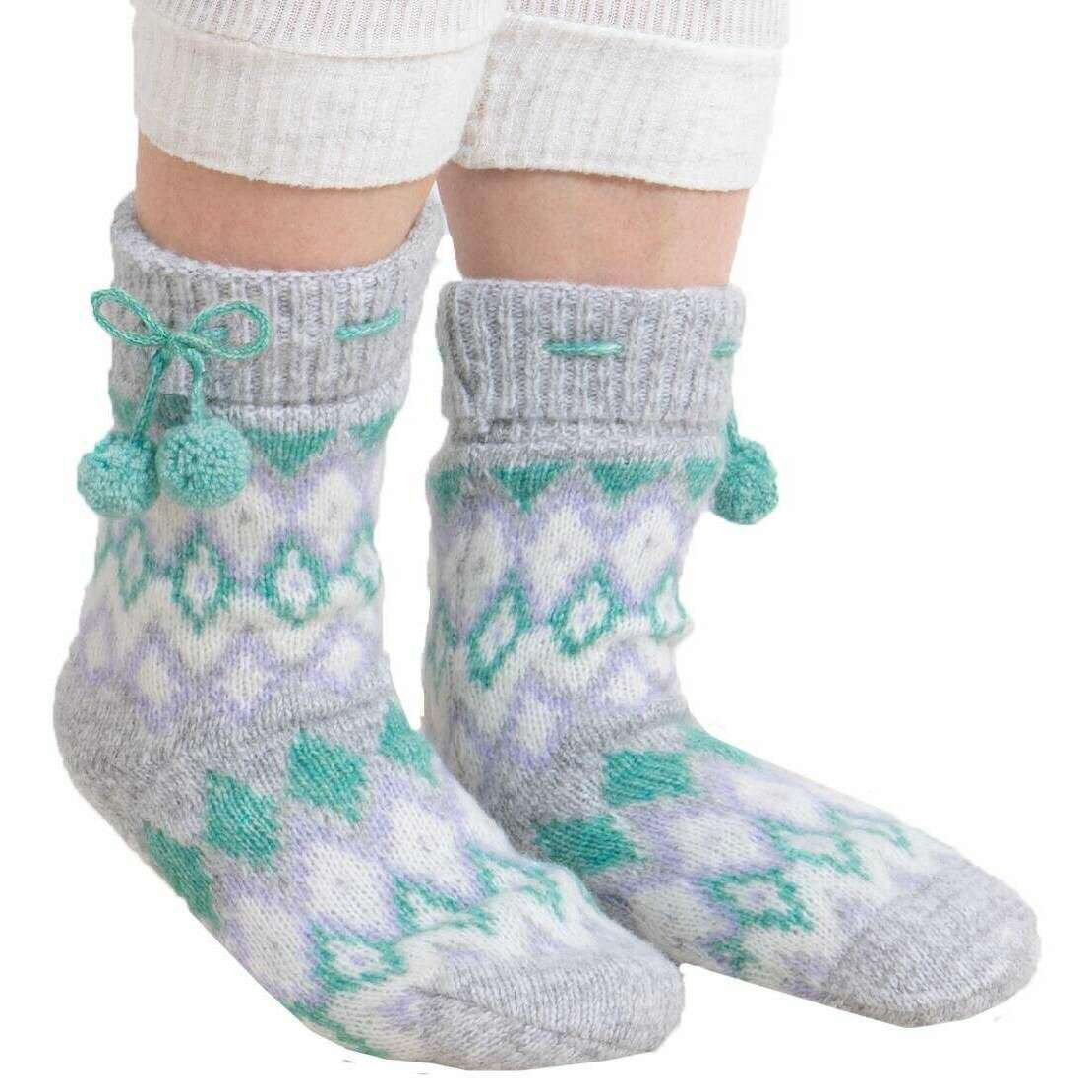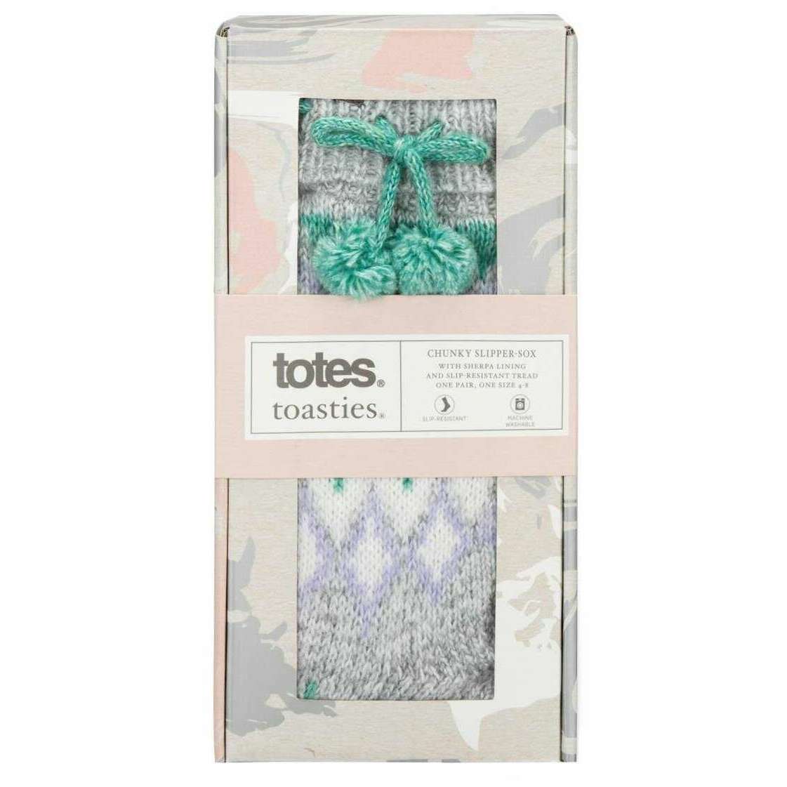 Toes Toasties Fair Isle Chenille Slipper Socks - Grå/Grön/Lila