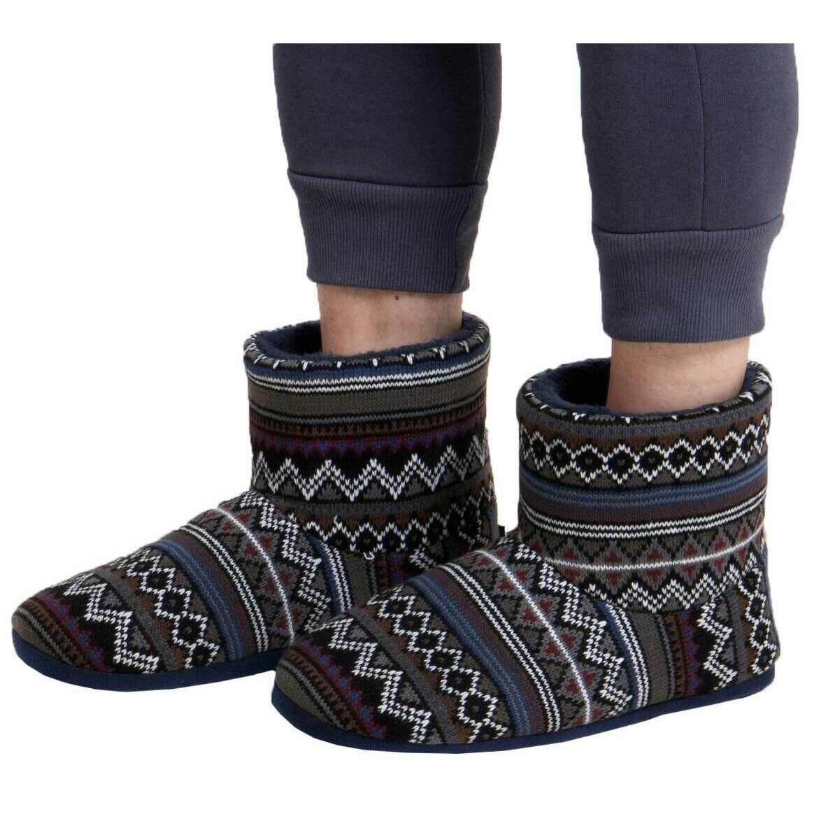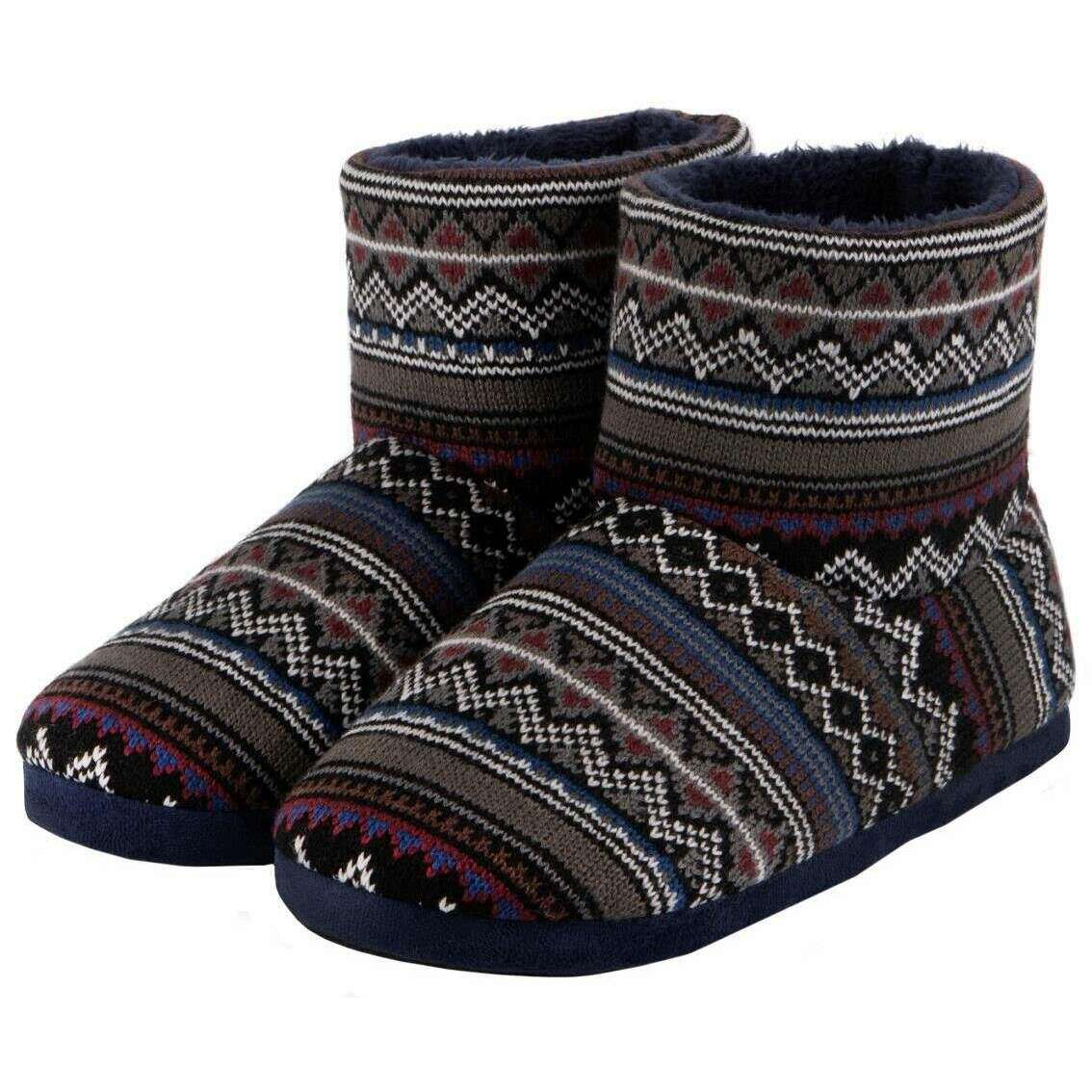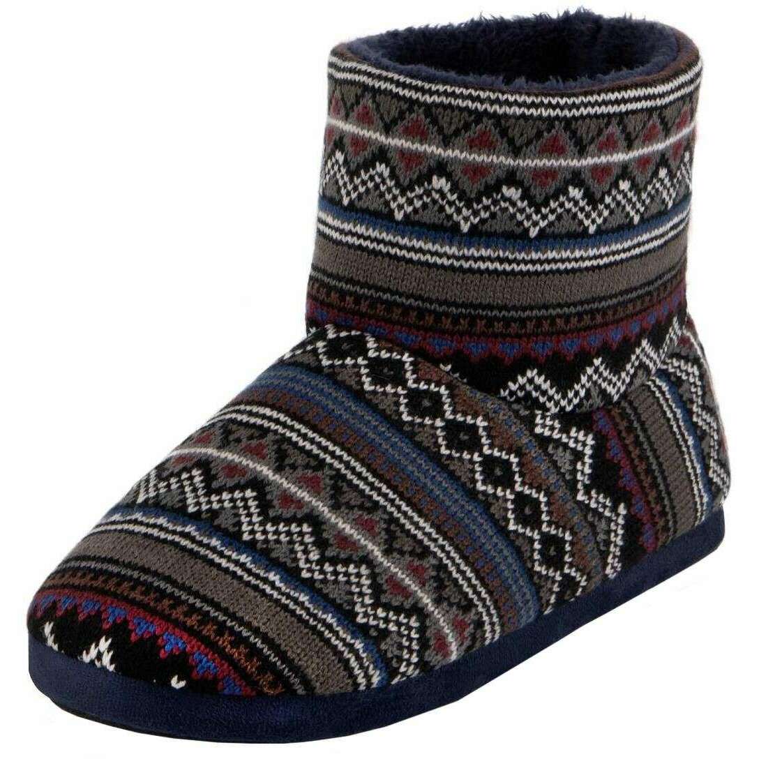 Totes Toasties Fair Isle Knit Boot Slippers - Blue