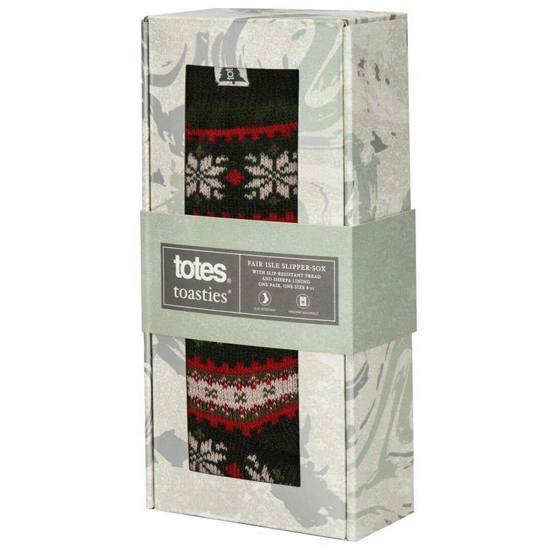 Perfekt för män är dessa Totes Toasties Red Fair Isle Slipper -strumpor, de är också tillverkade av 69% akryl, 31% polyester och 100% polyesterfoder. Även de röda strumporna är designade i ett fairisle -mönster, det rekommenderas att mäta tvätt vid 30 grader för att hålla dessa strumpor i gott skick. Alla strumpor är komplett med Totes toasties -förpackning. Totes Toasties Fair Isle Slipper Socks - Red är det perfekta paret för att antingen göra sysslor runt huset medan du håller fötterna fina och mysiga eller bara att ha på när du är avslappnad i soffan och tittar på din favorit vinterfilm. Denna Fair Isle -design är festlig och ger en julkänsla och har utformats med Sherpa -foder för optimal värme. Det här paret är den perfekta gåvan till din älskade eller till dig själv!