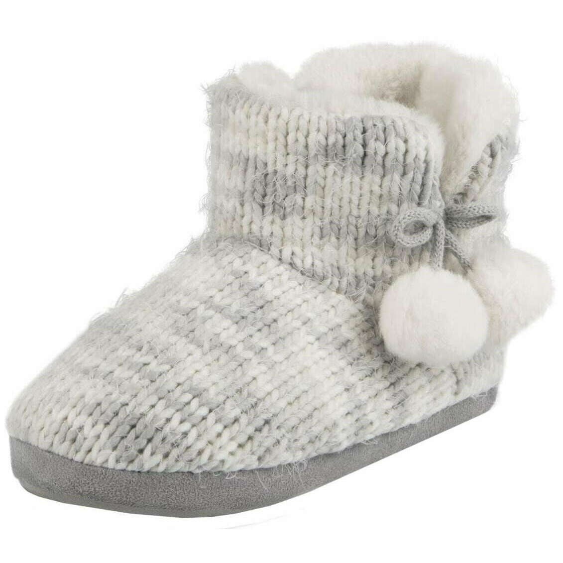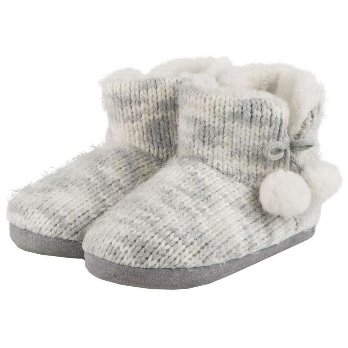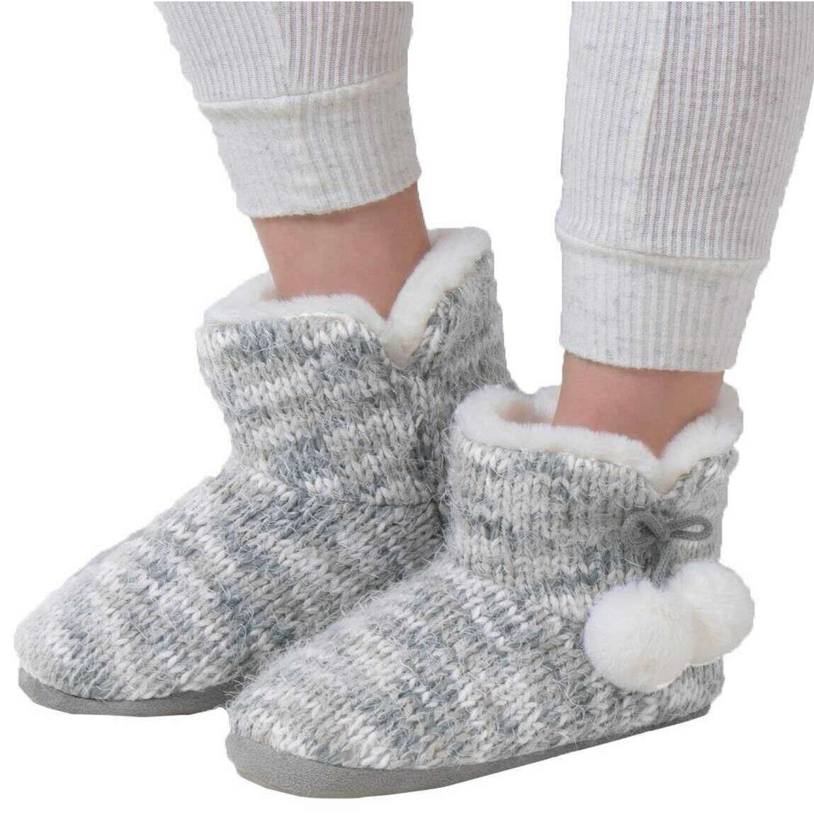 Dessa kvinnors rymdfärgade stickade boot tofflor av varumärket Totes toasties är tillverkade av 60% polyester, 40% akryl och syntetisk mocka och visas i grått. Även de grå tofflorna är utformade i ett 2-ton mönster, alla tofflor är kompletta med totes toastiesförpackningar. Totes Toasties Space Dye Sticked Boot Slippers - Gray kommer att para sig perfekt med någon av dina vinterliga PJ: er för en fullständig mysig look att koppla av efter en lång kall dag. Botlängden håller inte bara fötterna mysiga utan också dina vrister med det mjuka och varma faux pälsfodret, medan det extra minneskummet säkerställer optimal komfort när du går runt huset. Genom att slutföra detta utseende är den girly pom pom bow -detalj.