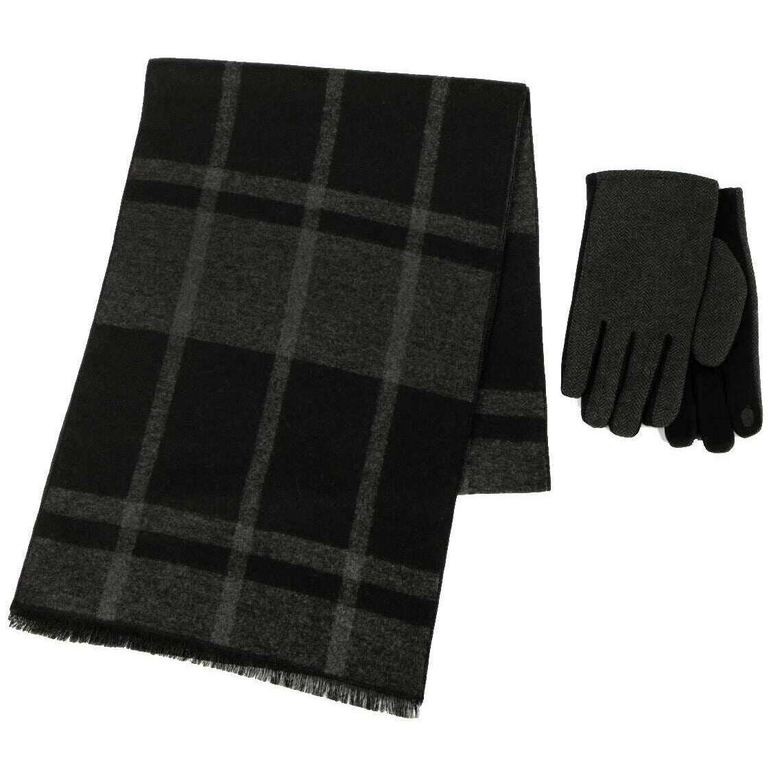 Toes Toasties Wool Blend Rutig halsduk och värmefodrade handskar Presentset - Svart