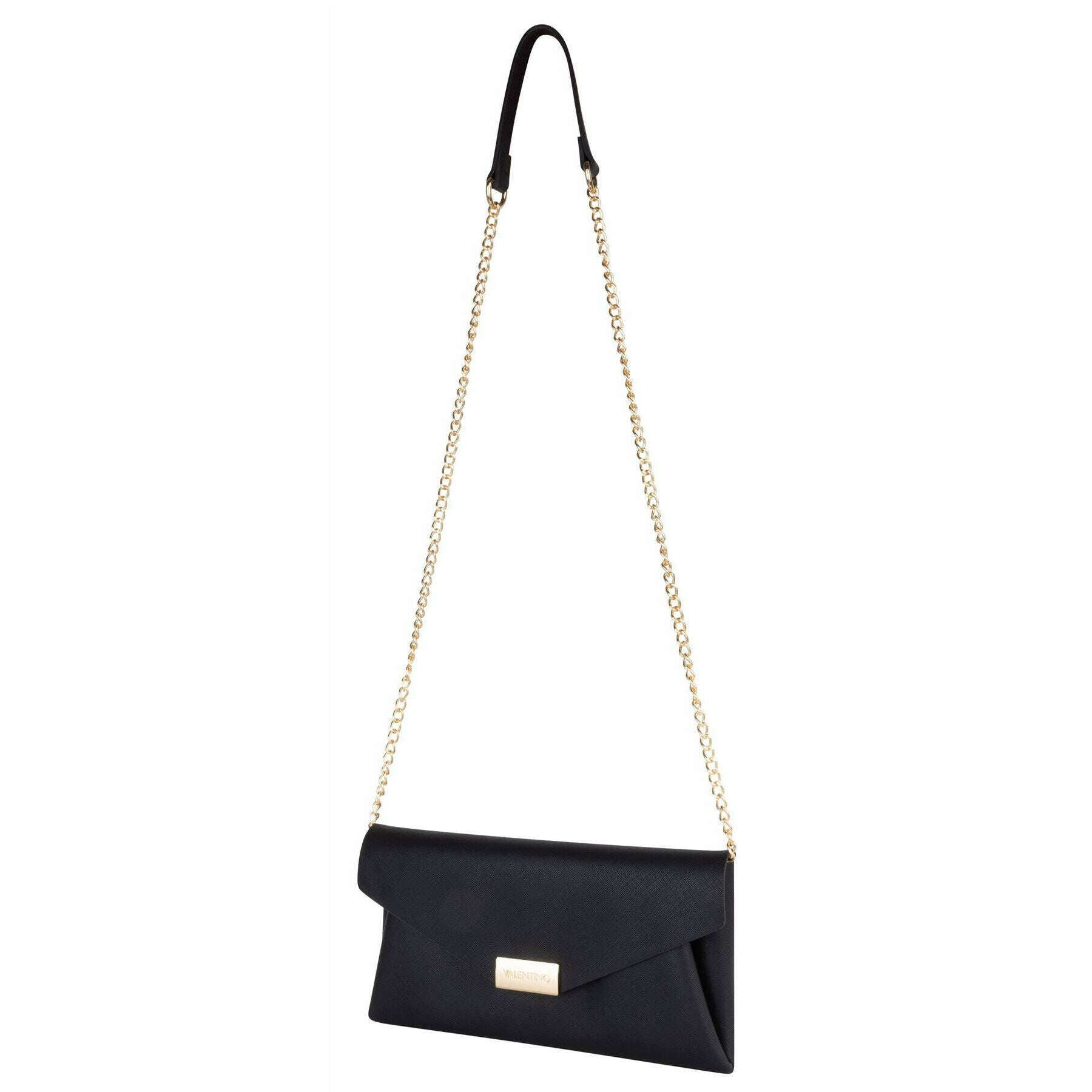 Denna arpie kuvertväska för kvinnor av märket Valentino är gjord av 100 % polyuretan och visas i svart. Den mäter 14,5 cm (höjd) x 27,5 cm (bredd) x 2,5 cm (djup). Alla påsar kommer kompletta i valentino-förpackning. Valentino Arpie Kuvertväska - Svart har en design i kuvertstil som är perfekt för bottenlösa bruncher eller kvällscocktails med tjejerna. Dess tryckknappsstängning säkerställer snygg säkerhet och den fantastiska kedjeremmen gör att den sitter vackert på din axel och avslutar din outfit perfekt. Det inre facket har en avdelare i mitten, vilket gör det enkelt att organisera dina nödvändigheter.