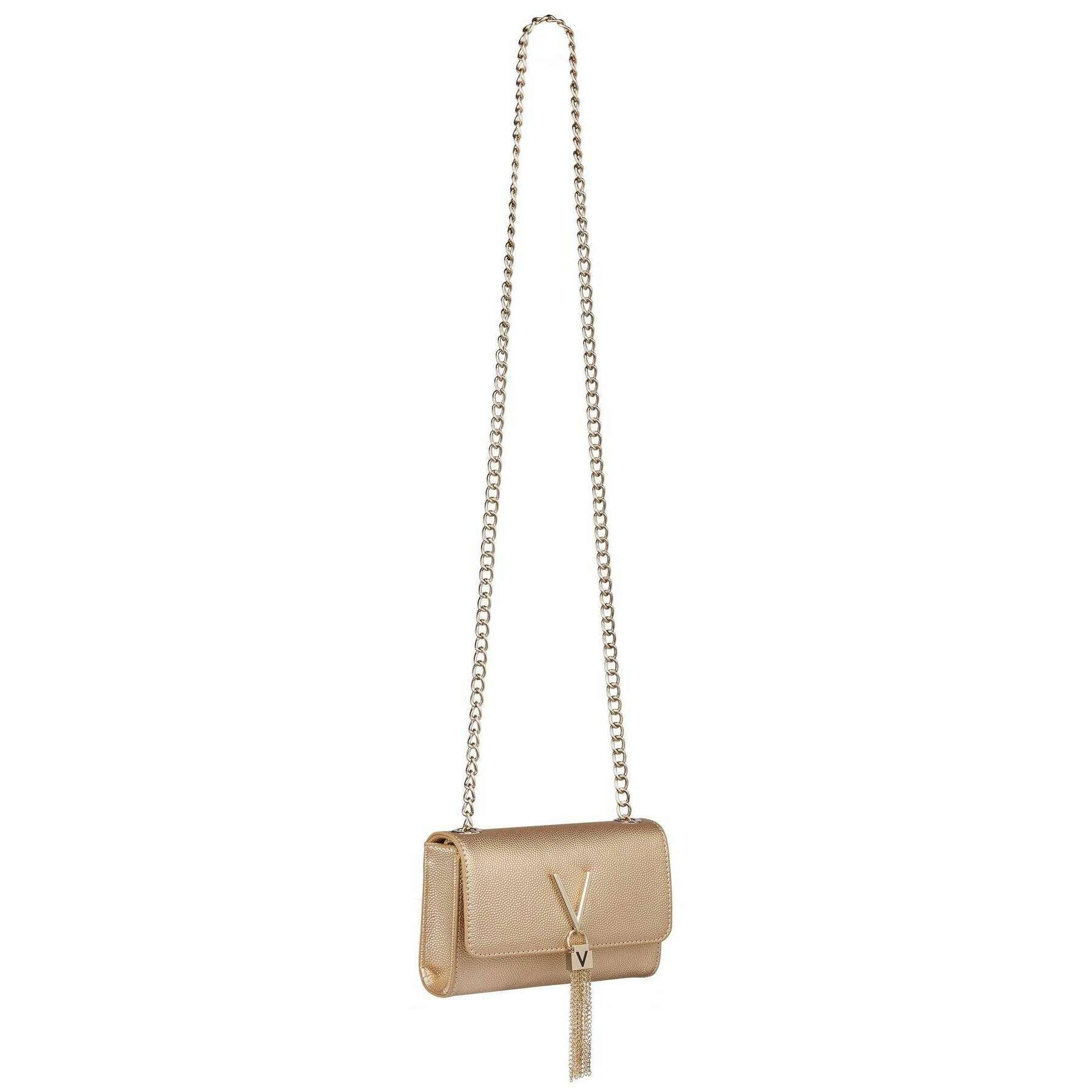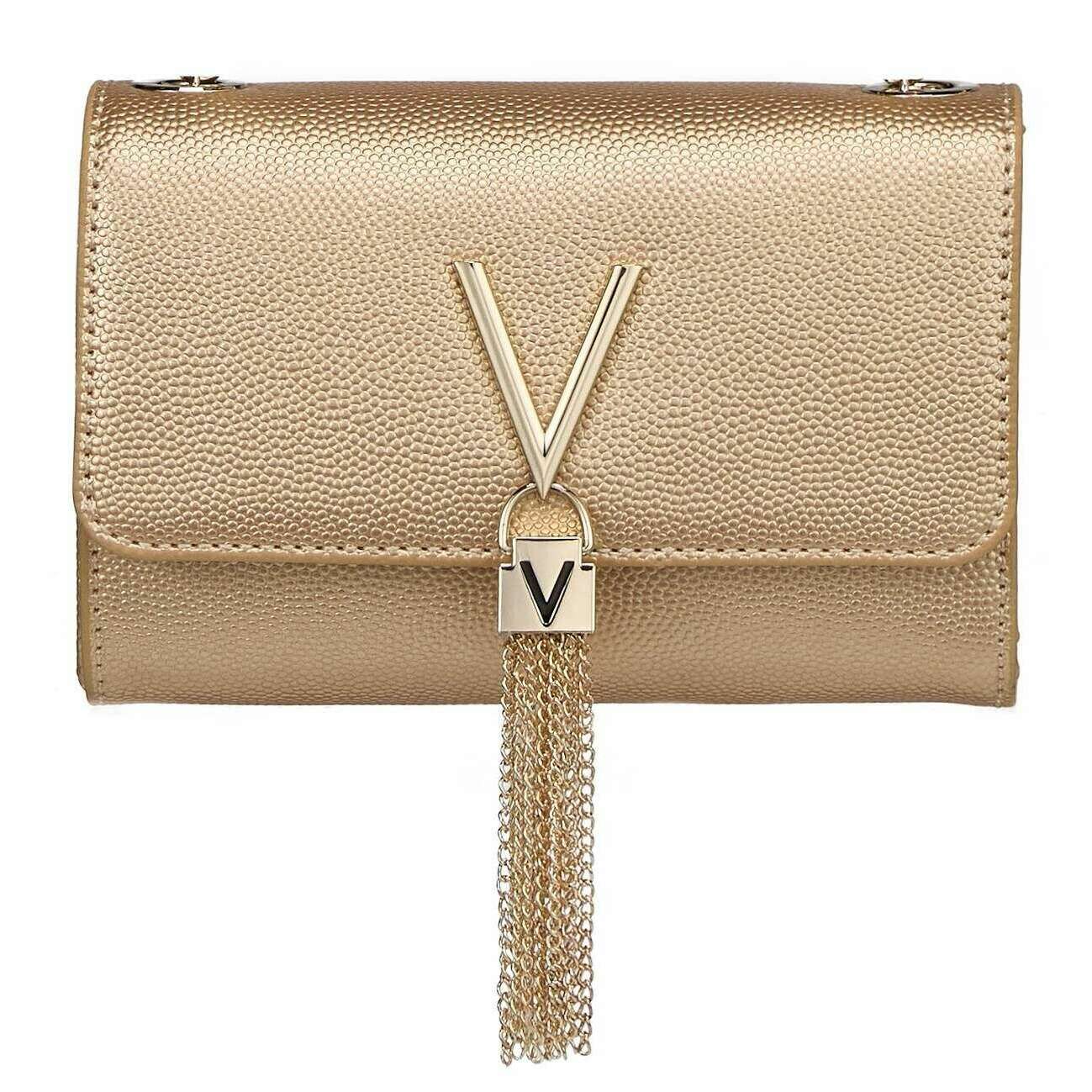 Denna divina crossbody-väska för kvinnor är gjord av 100 % polyuretan, presenterad i en guldfärg och är från märket Valentino. Den mäter 17 cm (höjd) x 23 cm (bredd) x 8 cm (djup). Det rekommenderas att torka rent med en trasa för att hålla denna påse i gott skick. Alla påsar levereras kompletta med valentino-förpackning. Valentino Divina Crossbody Bag - Oro Gold har en präglad effekt med kaviarkorn, vilket ger den en lyxig touch som får dig att sträcka dig efter den här väskan vid varje tillfälle. Dess snäppstängning säkerställer att alla dina tillhörigheter är säkert säkrade inuti och den underbara hårdvaran ger den tidlös elegans. Den perfekta kombinationen av praktisk och sofistikerad, denna pochette är den perfekta följeslagaren för alla utflykter, oavsett om det är lunch eller kvällscocktails.