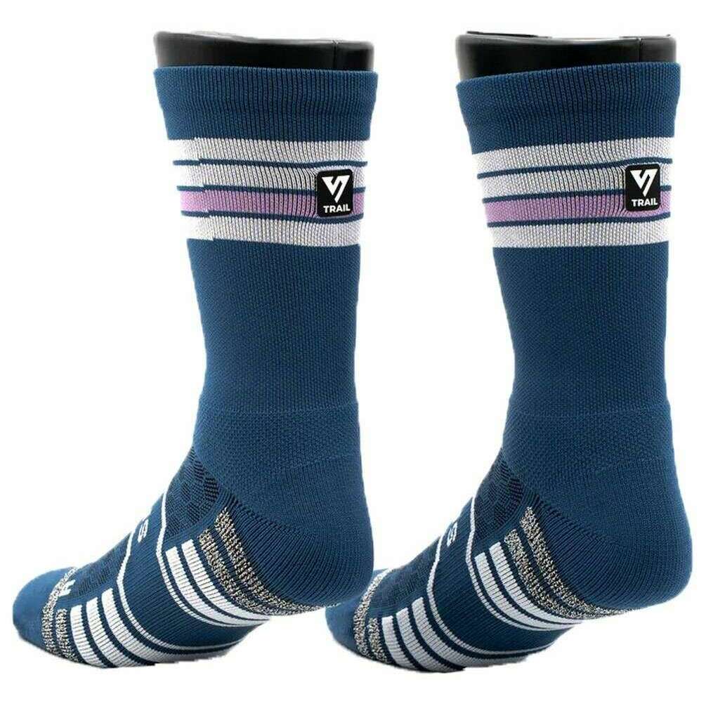 Dessa dimmiga sjölöparstrumpor för män eller kvinnor är gjorda av märket Versus i en blå färg och är gjorda av 96 % nylon och 4 % elastan. Även de blå sockorna är designade i ett unikt mönster. Det rekommenderas att tvättas i 30 grader för att hålla dessa strumpor i gott skick. Alla strumpor kommer kompletta med kontra strumpor. Versus Misty Lake Trail Running Socks - Blue har stil och högkvalitativ teknologi, designade för att stödja din fot och fotvalv under vardagskläder eller intensiva aktiviteter som löpning, vandring och racing. Dessa blå löparstrumpor andas och är bekväma med sin sömlösa design.