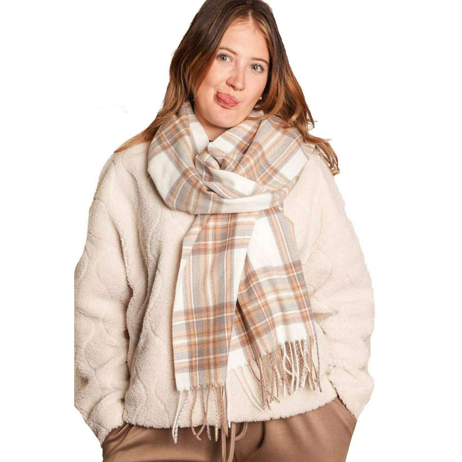 Zelly Check Winter Weight Scarf - Beige/Brun