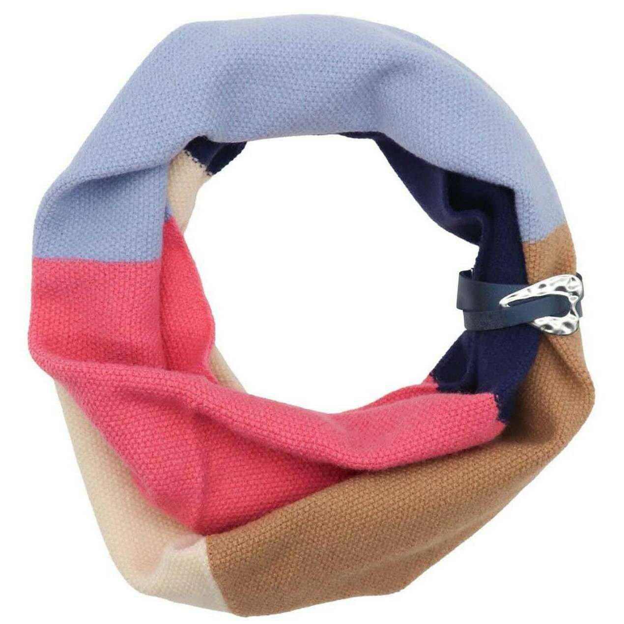 Zelly Faux Leather Detail Loop Snood - Blå/Rosa/Beige