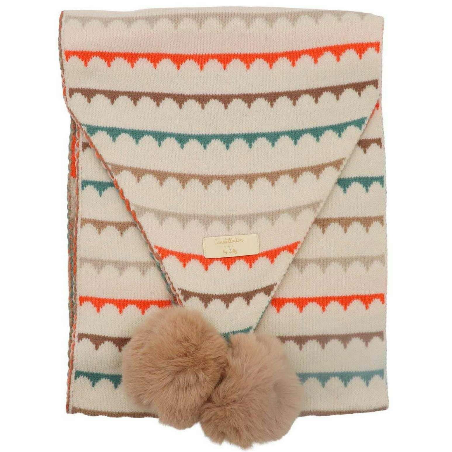 Zelly Waves Pom Pom Scarf - Kräm/Orange/Grön